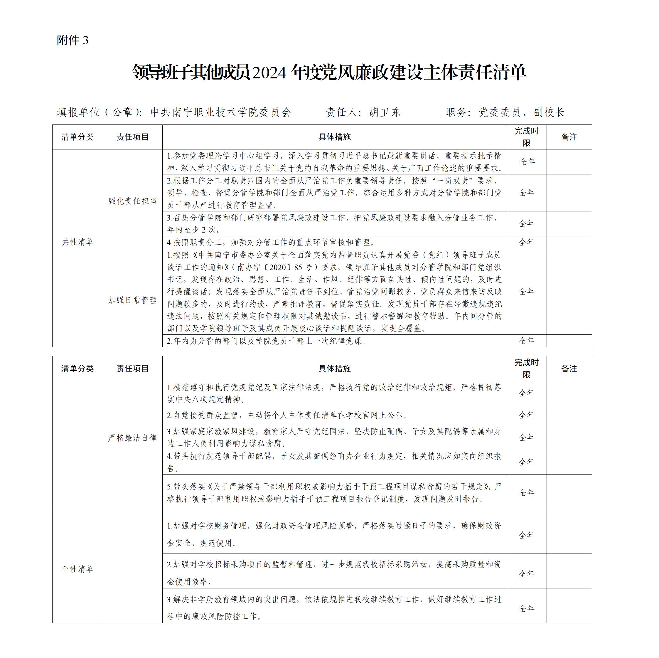 领导班子其他成员2024年度党风廉政建设主体责任清单