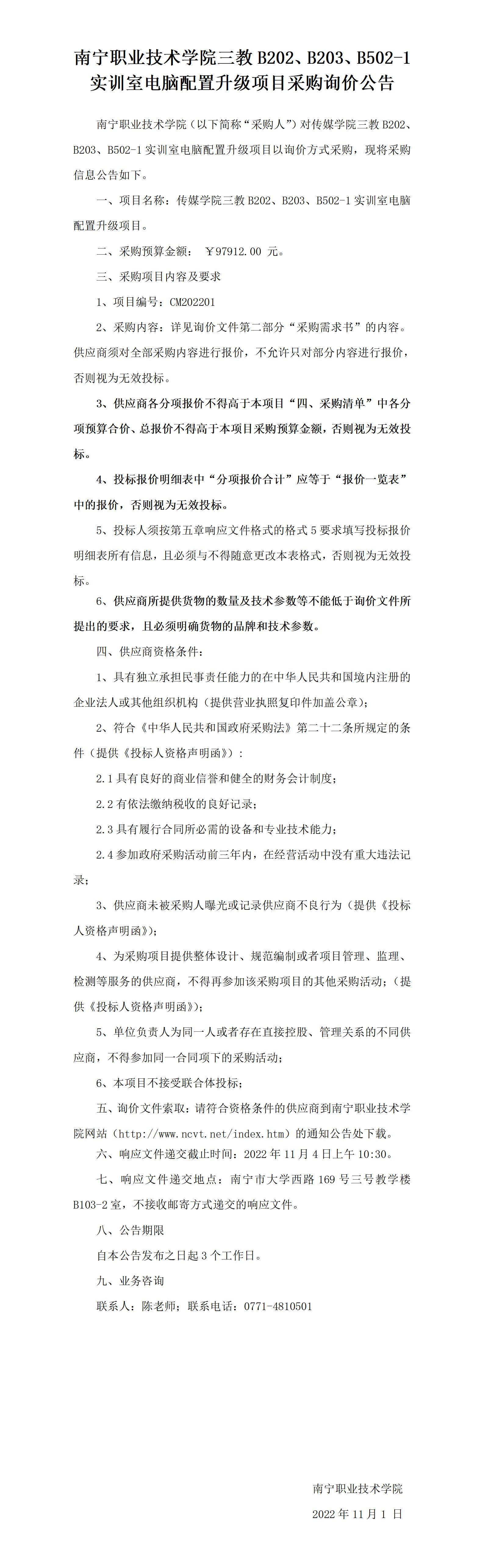 上一条: 南宁职业技术学院技能竞技综合训练室设备采购公开招标公告