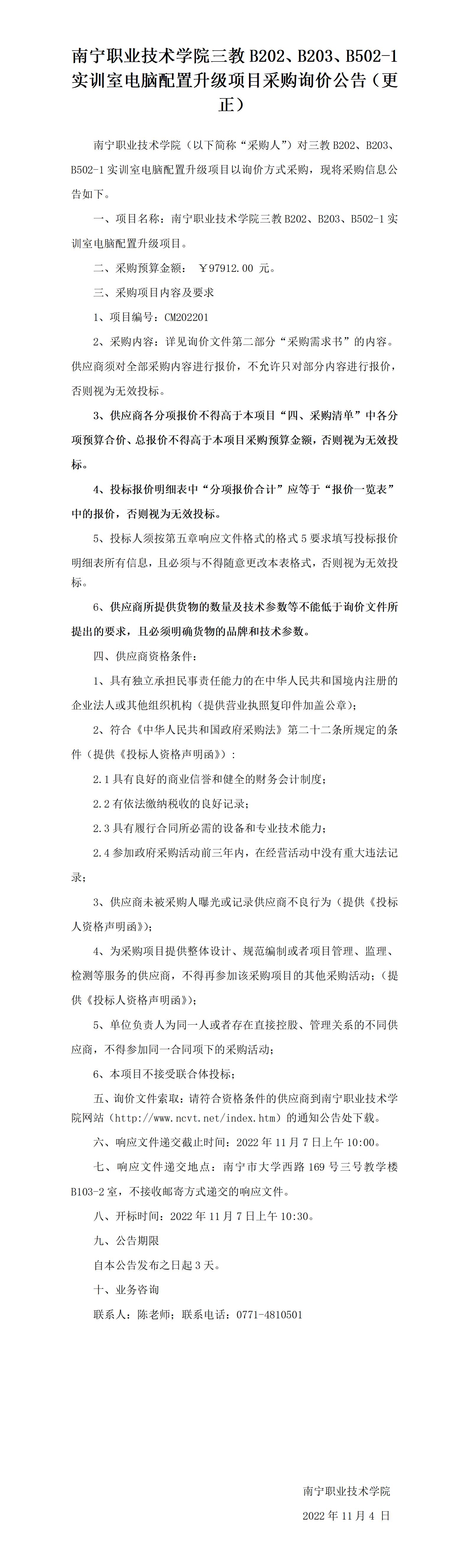 上一条: 南宁职业技术学院思政课教师研修基地建设项目采购的竞争性谈判公告