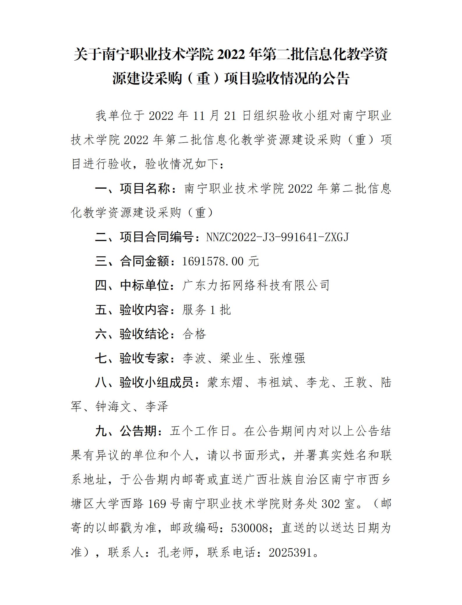 下一条:关于南宁职业技术学院2022年第二批信息化教学资源建设采购标项一项目验收情况的公告