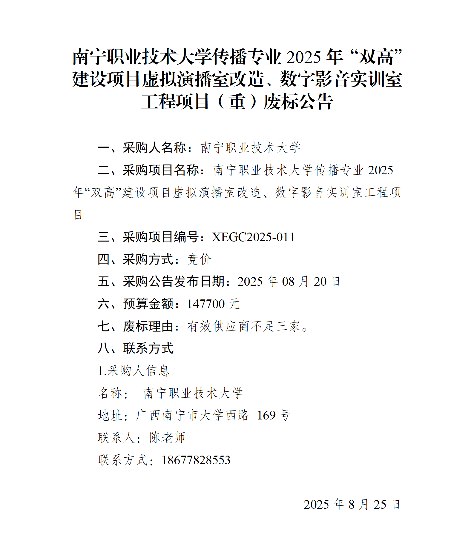 下一条:南宁职业技术大学文化与旅游学院实训室建设工程项目采购公告