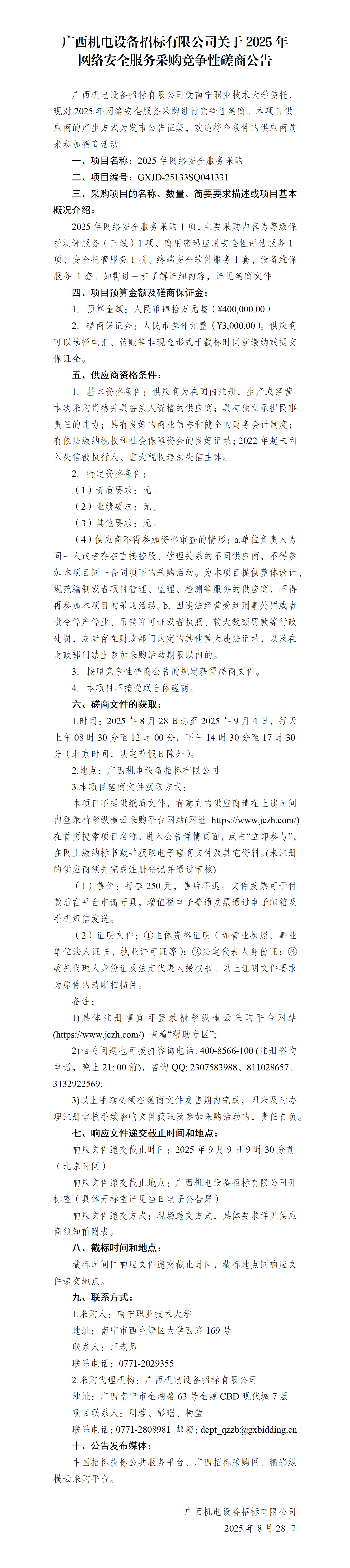 上一条: 广西同泽工程项目管理股份有限公司关于智慧城市CIM实训中心的公开招标公告
