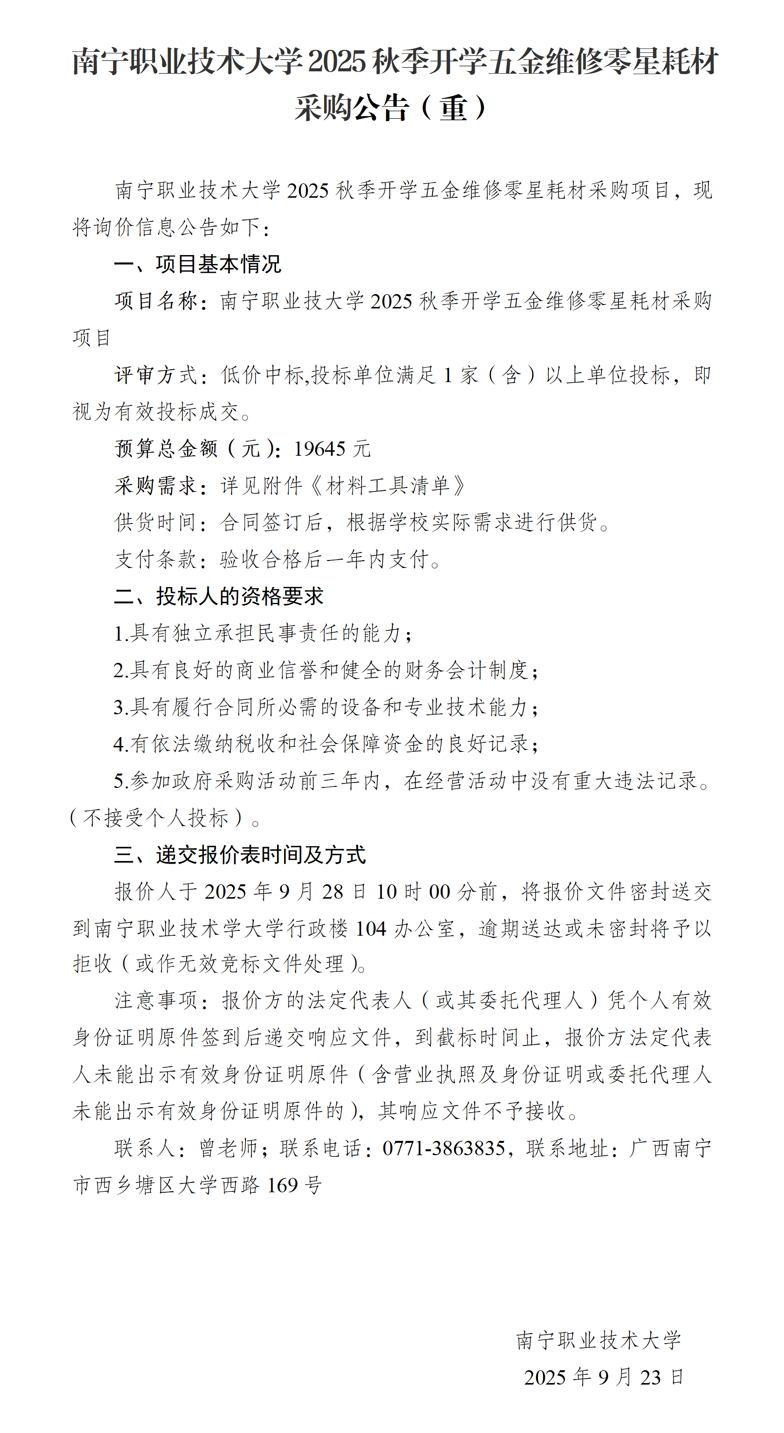 下一条:南宁职业技术大学灭火器采购询价公告(重1)