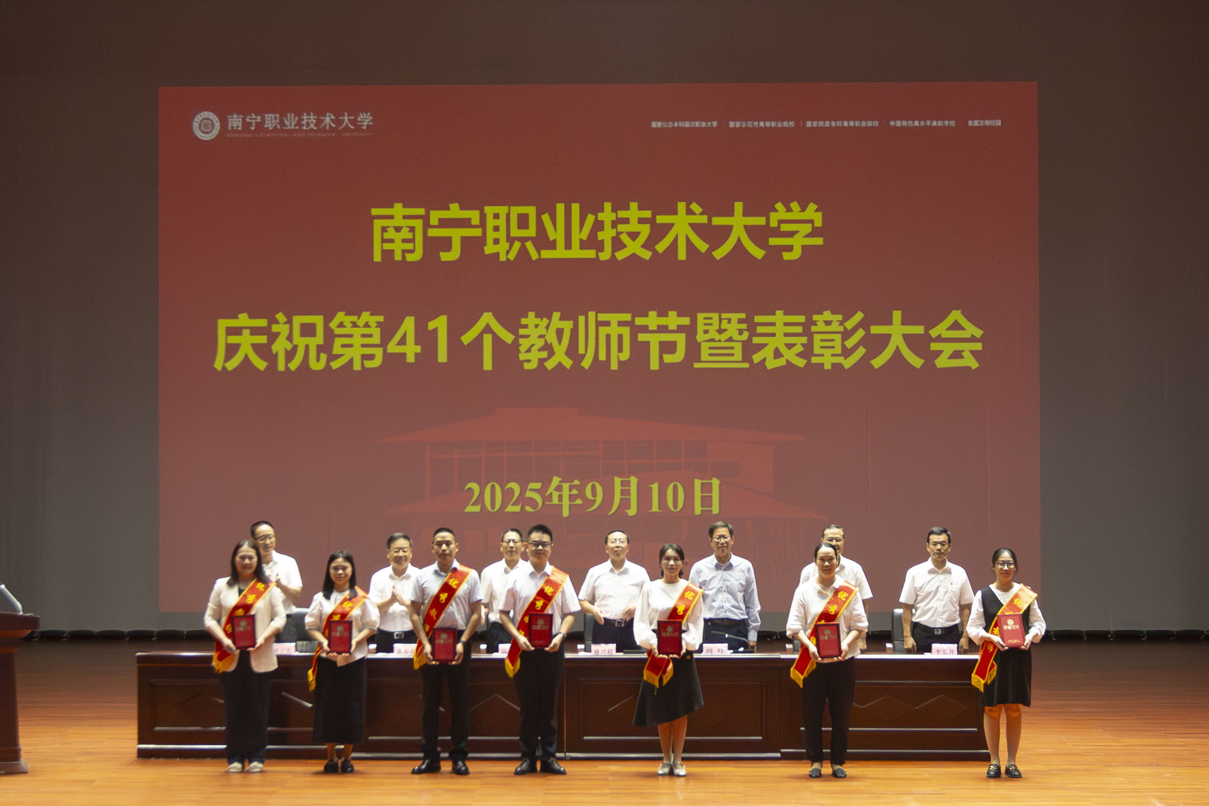 会上,杨清源宣读了《中共南宁职业技术大学委员会 南宁职业技术大学关于表彰2025年优秀教师和先进教育工作者的决定》文件,决定授予龙妍、莫名韶、钟海雄等15名同志“优秀教师”称号,授予唐丹萍、陈诚、黄日成等10名同志“先进教育工作者”称号。