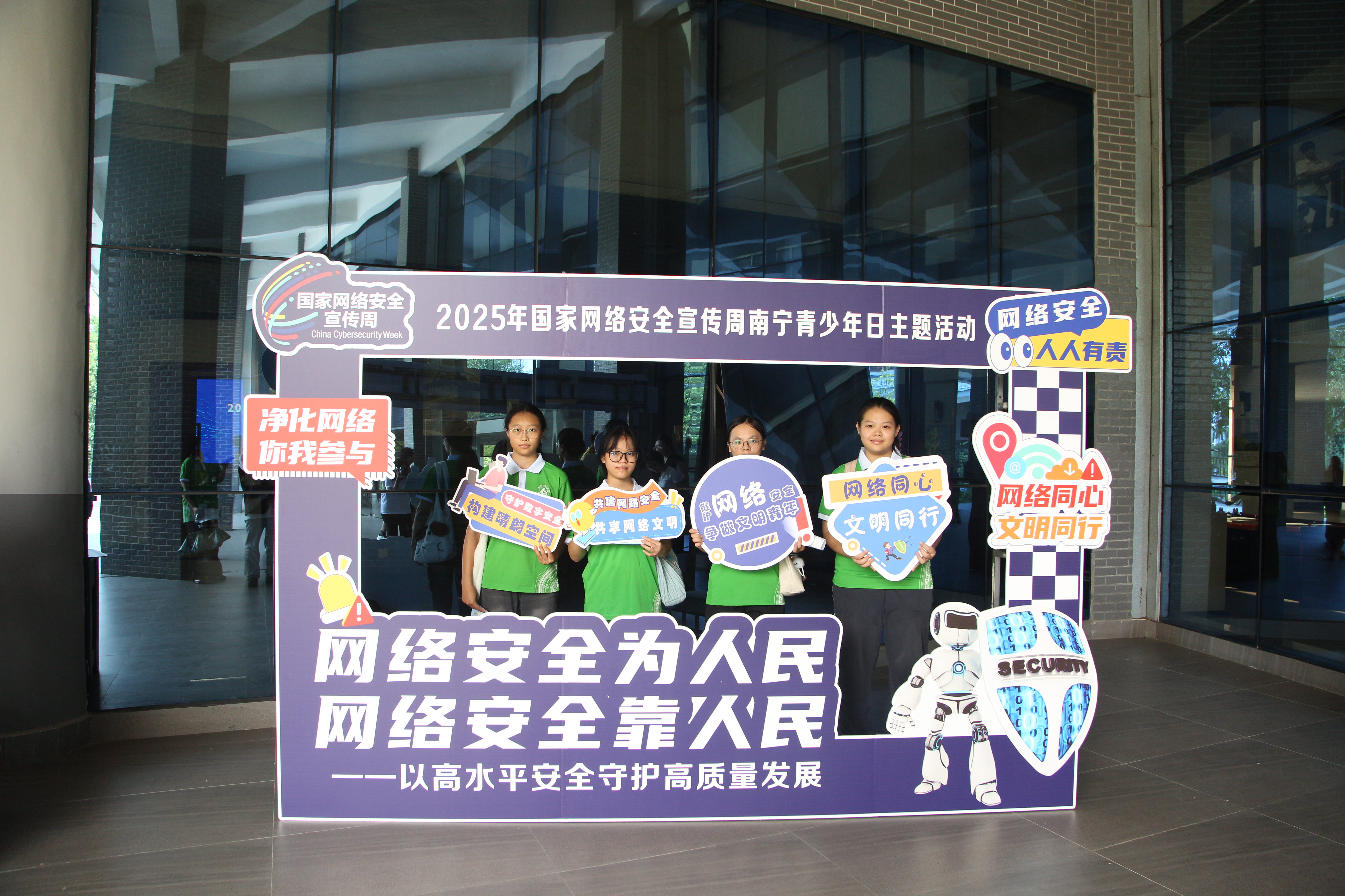 9月19日,2025年国家网络安全宣传周南宁青少年日主题活动在我校举行。共青团南宁市委副书记欧阳怡,学校党委常委、副校长李东升出席活动。