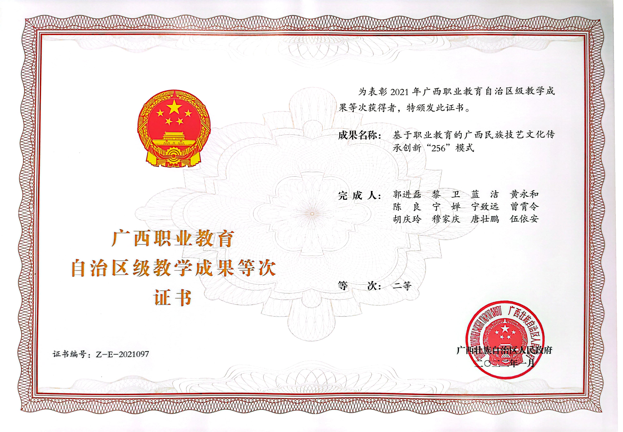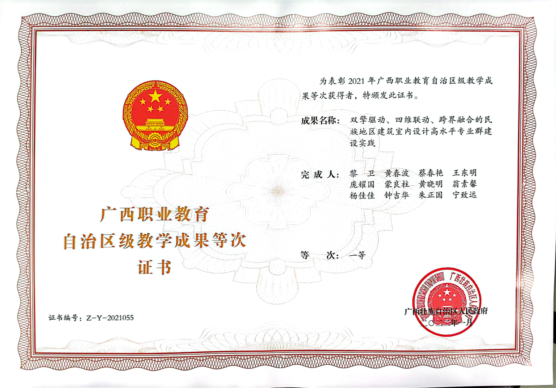 团队成果获评广西职业教育自治区级教学成果一等等次