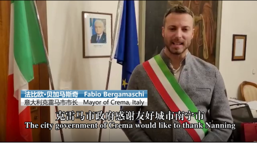 南宁国际友城意大利克雷马市市长在开班式上致辞(会议平台截图)