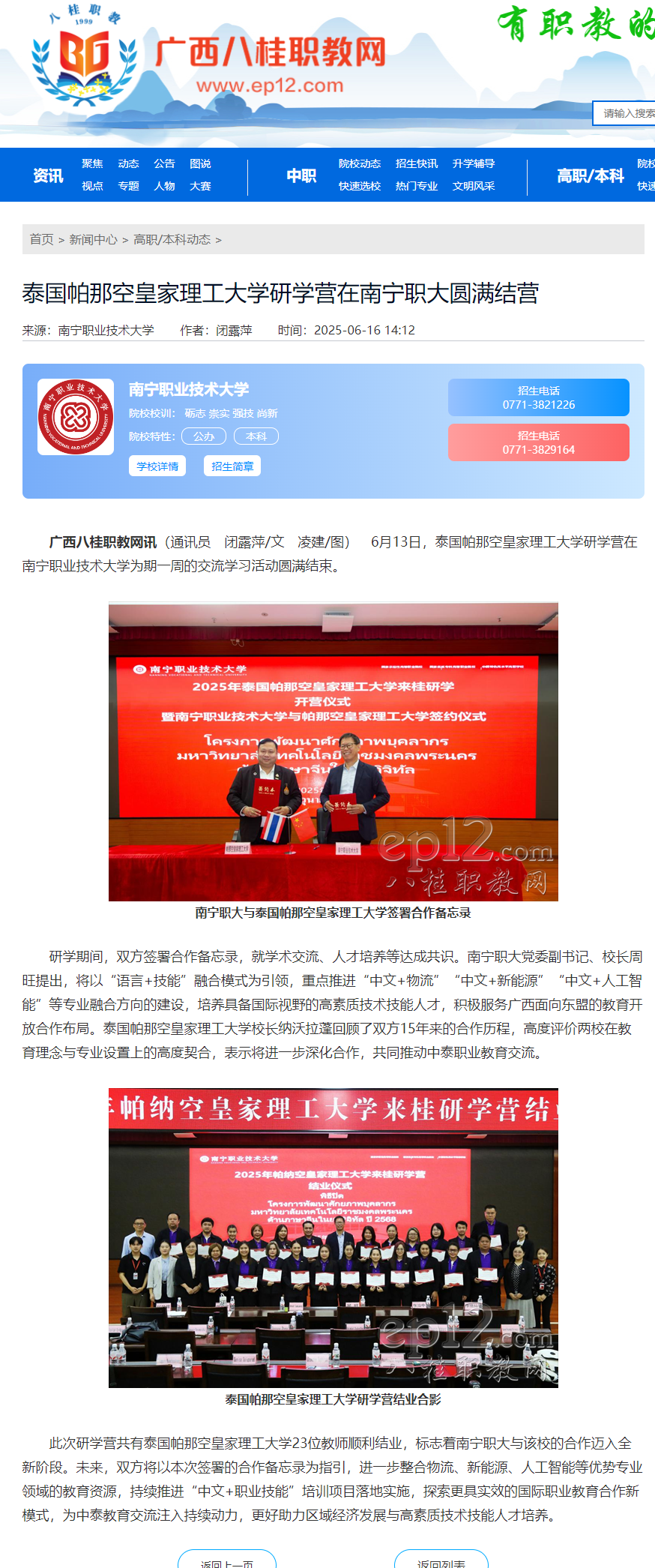 电话:0771-2029337(党政办公室) 0771-3821226(招生就业处)