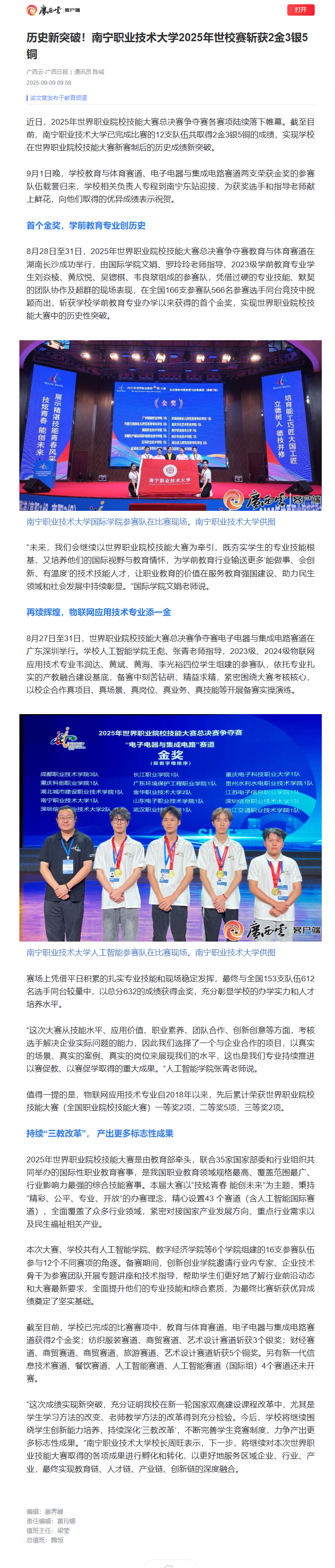 上一条: 历史新突破!南宁职业技术大学2025年世校赛斩获2金3银5铜