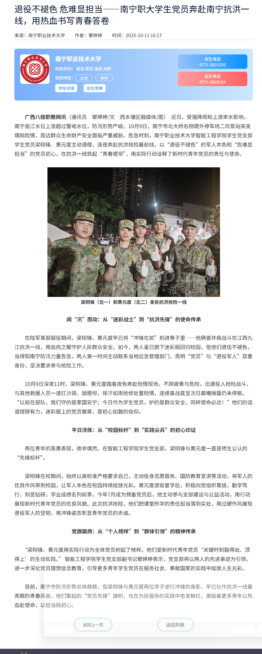 上一条: 南职大学生党员奔赴南宁抗洪一线,用热血书写青春答卷
