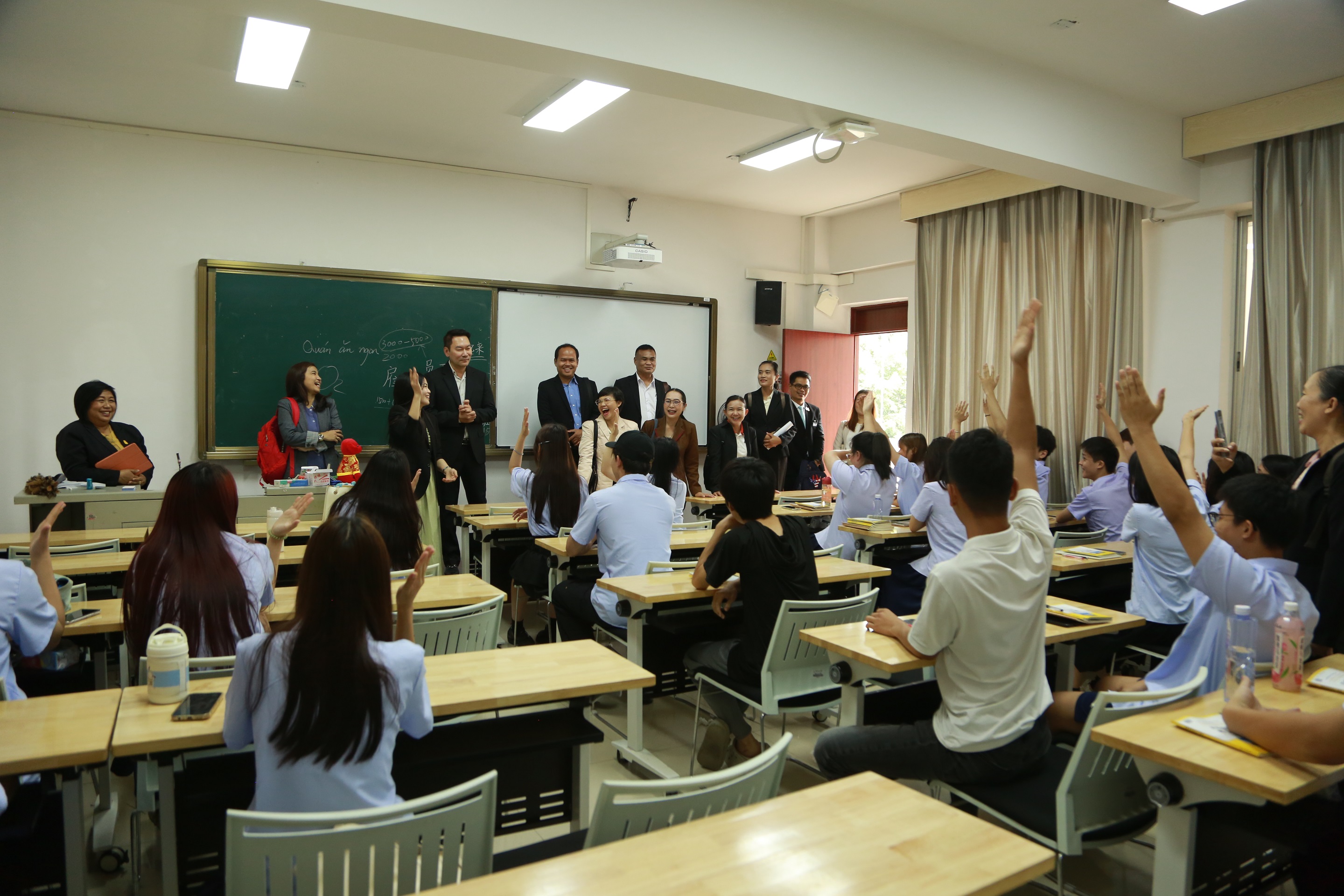 会后,泰国加拉信大学校长助理一行深入商学院进行实地参观考察,并到国际学院应用泰语专业班级中与同学们交流。