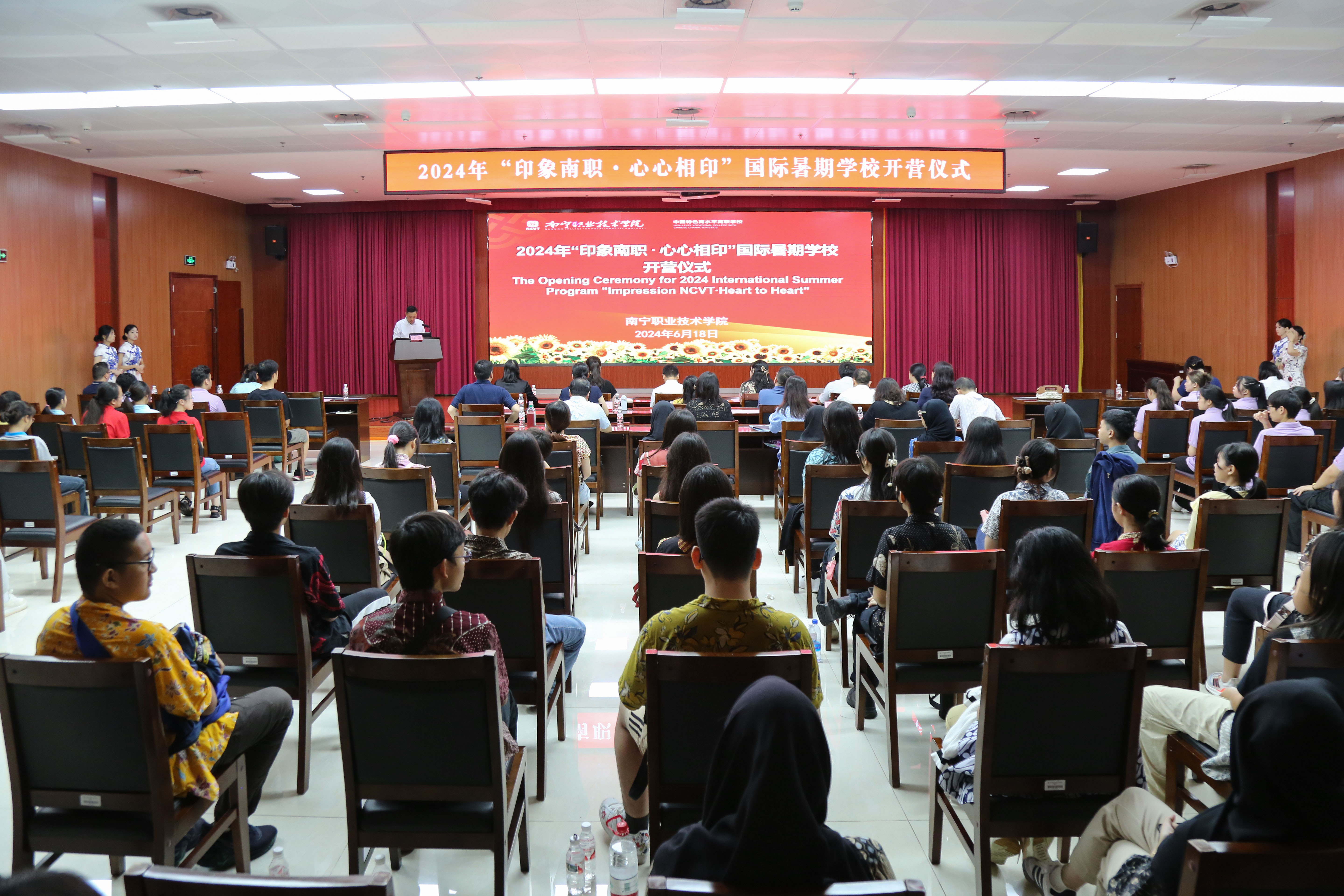 6月18日,由我校商学院承办的2024年“印象南职·心心相印”国际暑期学校在会议中心三号厅举行顺利开营,活动迎来了来自印度尼西亚梭罗市、三宝垄市6所学校的43名师生。学校副校长李东升出席开营仪式并致辞。