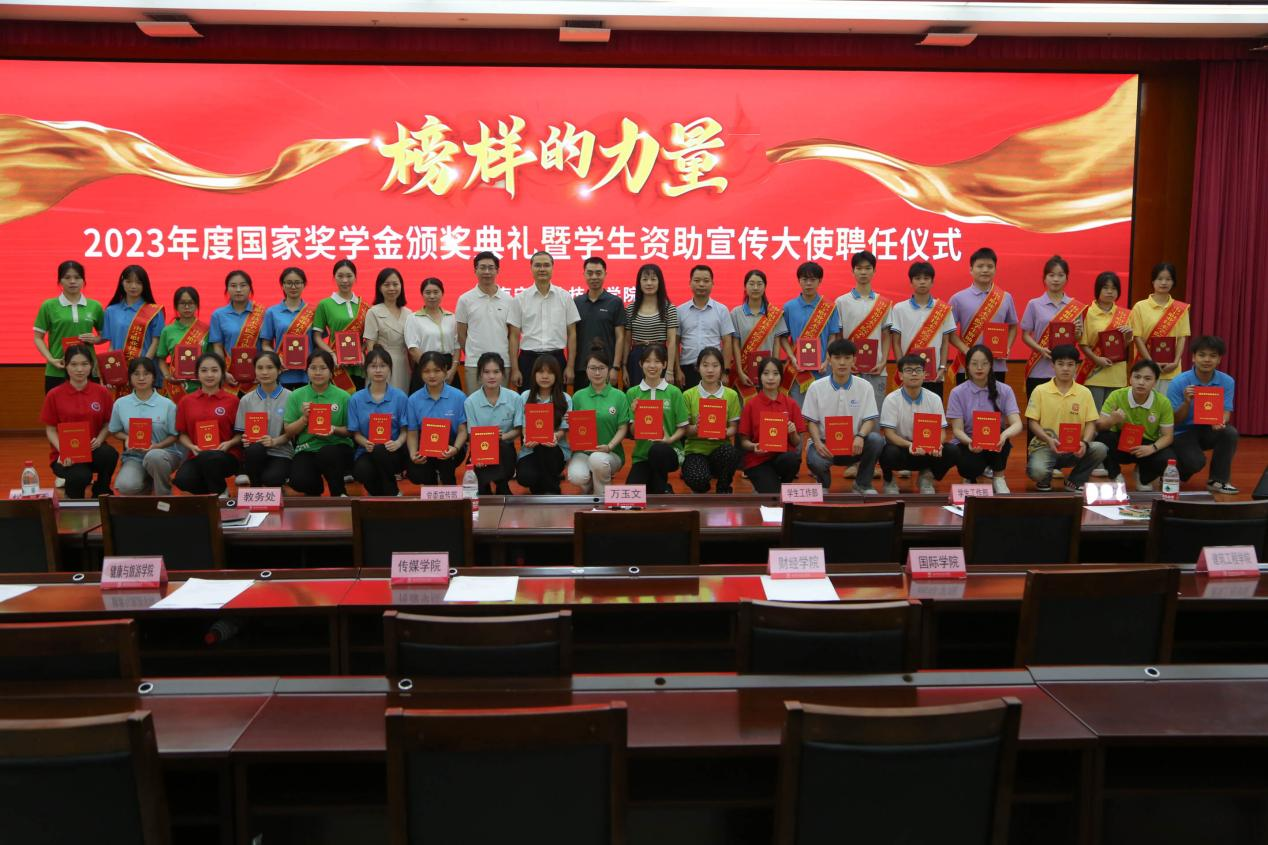 为深入挖掘学生资助育人优秀典型,充分发挥国家奖学金等奖项获得者的榜样示范引领作用,体现党和国家对青年大学生的关怀期望,6月21日下午,我校在会议中心2号厅举行2023年度国家奖学金颁奖典礼暨学生资助宣传大使聘任仪式,学校党委委员、副校长万玉文出席活动。