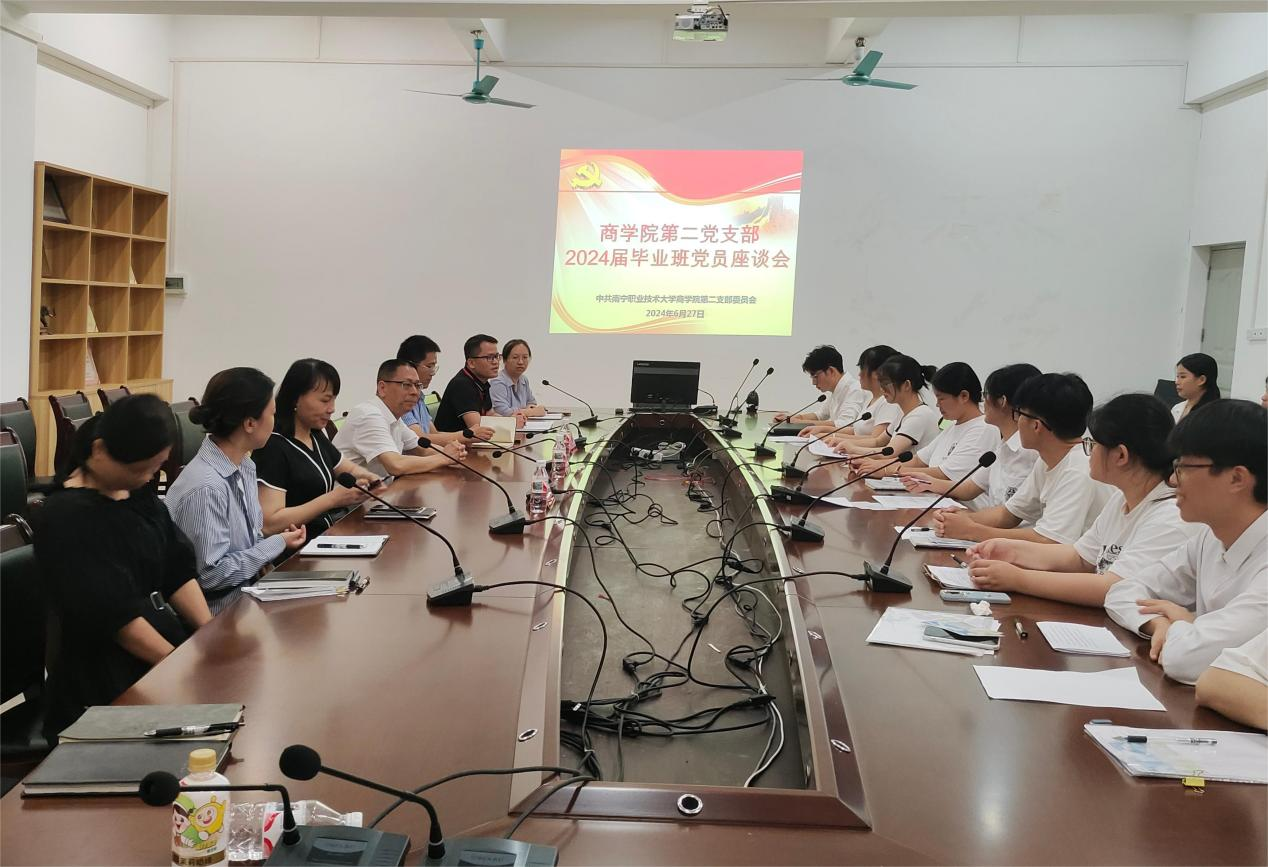 6月27日下午,商学院2024届毕业生党员座谈会在四训319会议室召开。学校党委副书记杨清源参加座谈会并作指导?;嵋橛傻诙持Р渴榧腔莆鞒?。