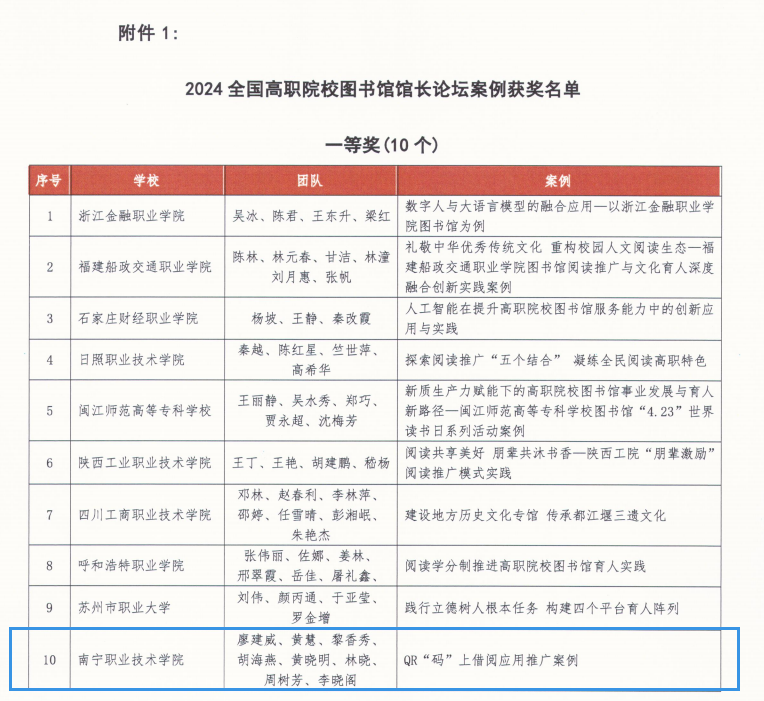 我校教育发展与信息服务中心(图书馆)提交的两个案例和一篇论文分别荣获一个一等奖和两个三等奖。其中,由廖建威、黄慧、黎香秀、胡海燕、黄晓明、林晓、周树芳、李晓阁八位同志组成团队合力完成的《QR“码”上借阅应用推广案例》荣获大会案例一等奖。