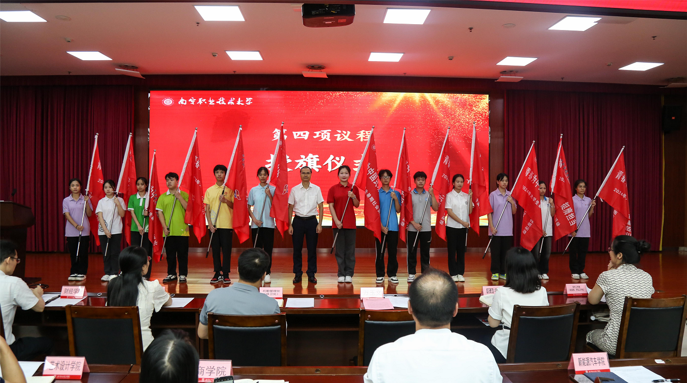 万玉文为暑期社会实践团队授旗(南职融媒宋家慧/摄)