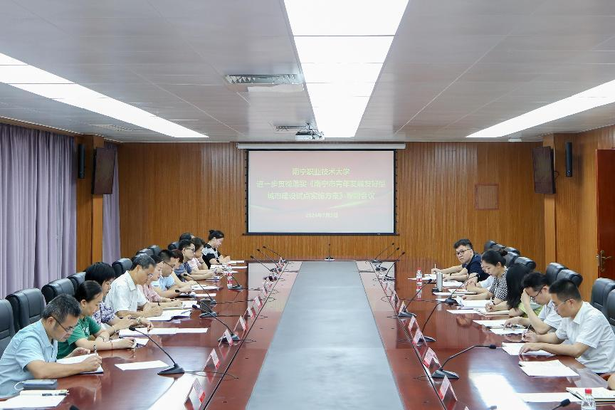 7月5日,我校在综合楼第一会议室召开进一步贯彻落实《南宁市青年发展友好型城市建设试点实施方案》专题会议。学校副校长万玉文出席会议并讲话。各学院、各部门负责人参加会议。会议由校团委书记孙洁晶主持。