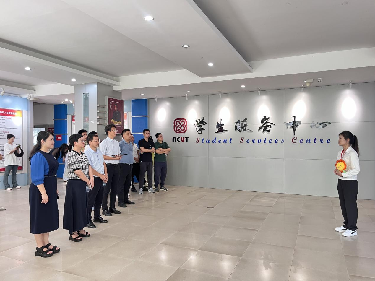 此次考察调研的内容主要包括“一站式”学生社区建设、辅导员工作室建设、大学生安全教育基地建设等。万玉文介绍了我校发展整体情况、辅导员队伍建设及“一站式”学生社区建设情况等,并陪同大家先后参观了“湘约网事”辅导员工作室、大学生心理健康教育与咨询中心、“一站式”学生社区多功能活动中心、“一站式”学生社区开放式数字阅读自助服务区、大学生安全教育基地、”一站式“学生服务大厅等场所。他指出,南宁职业技术大学一直以来非常重视学生工作,统筹协调各部门和学院不断加强学生工作队伍建设和完善基础设施建设。学校“一站式”学生社区建设在等级认定中获得A类建设单位,“湘约网事”工作室获批为第一批广西高校高水平辅导员工作室,“向阳花政开”工作室正获得第二批广西高校高水平辅导员工作室培育建设项目公示。北海职业学院党委委员、副校长傅文芳表示,此次考察调研收获非常大,希望今后两校加强交流,共享辅导员队伍建设及学生社区建设等经验,共同推动高校学生工作高质量发展。