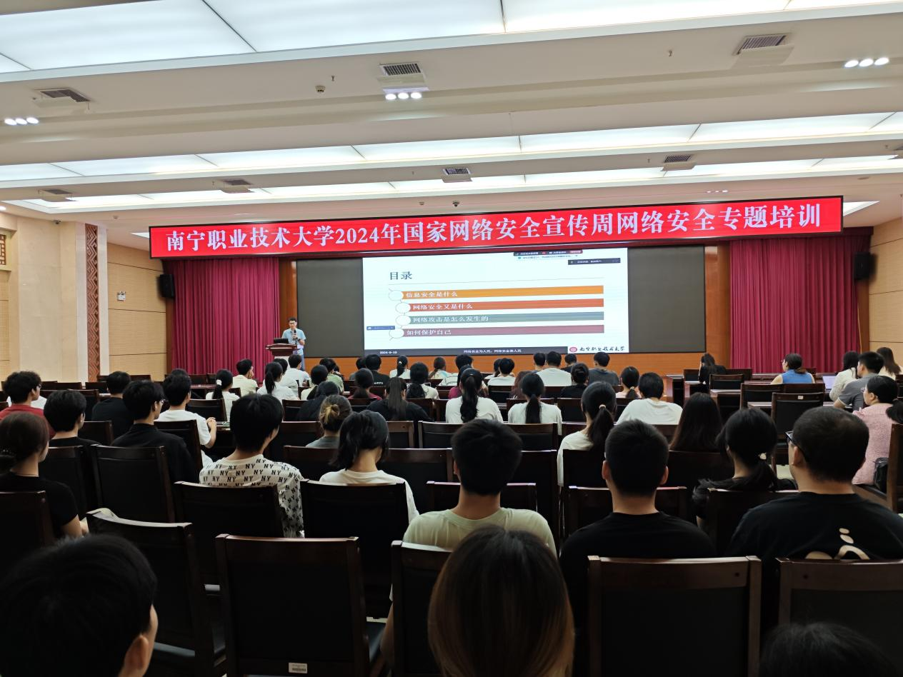 9月10日,我校在会议中心二号厅举办2024年国家网络安全宣传周网络安全专题培训。学校网络安全员、新闻宣传员、舆情信息员、驻村第一书记以及学生代表共150余人参加培训。