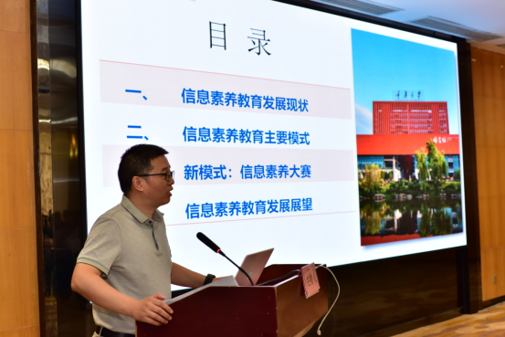 会上,重庆大学图书馆馆长魏群义、深圳职业技术大学图书馆副馆长敖龙、四川师范大学图书馆研究馆员周建芳分别作了题为《大学生信息素养教育模式的创新与发展》《深职大信息素养教育实践与思考》《信息素养比赛命题思考与备赛建议》的报告;同方知网(北京)技术有限公司广西分公司、北京智信数图科技有限公司、北京万方数据股份有限公司等支持单位派出了专家团队从AI赋能向“新”求质和创新服务等方面展示了最新的信息素养培育知识工具和资源平台等内容;南宁职业技术大学黄晓明、陕西国防工业职业技术学院任天娟、海南软件职业技术学院吴乾清分享了信息素养教育教学和比赛方面的经验。