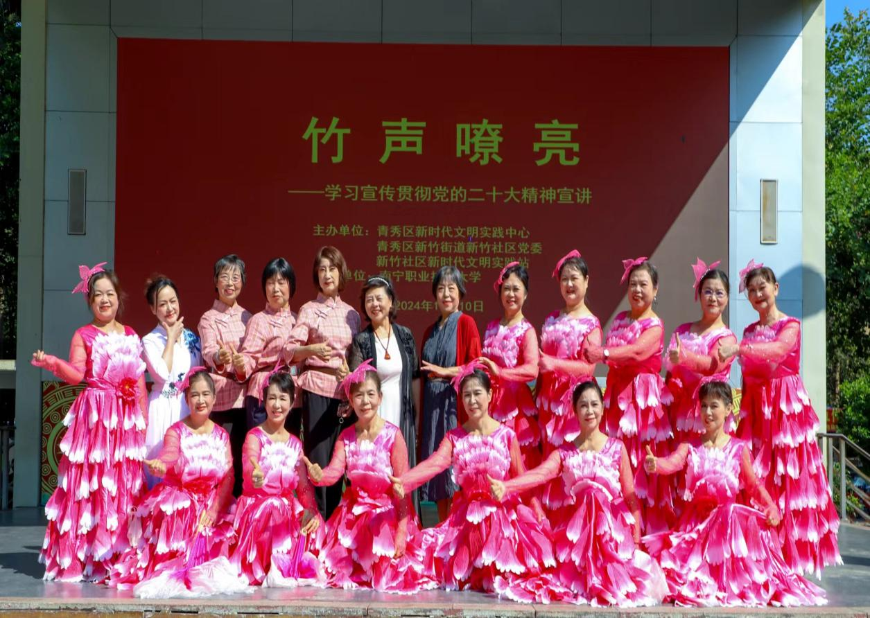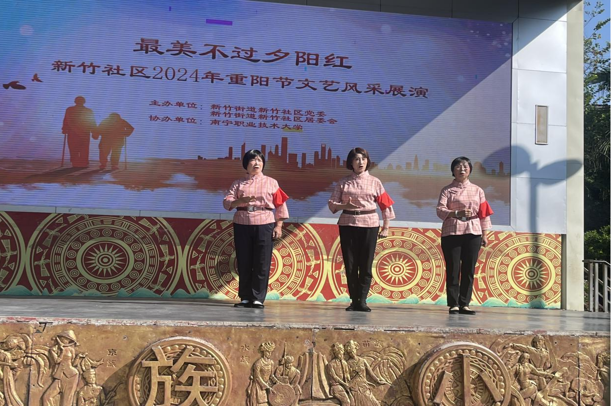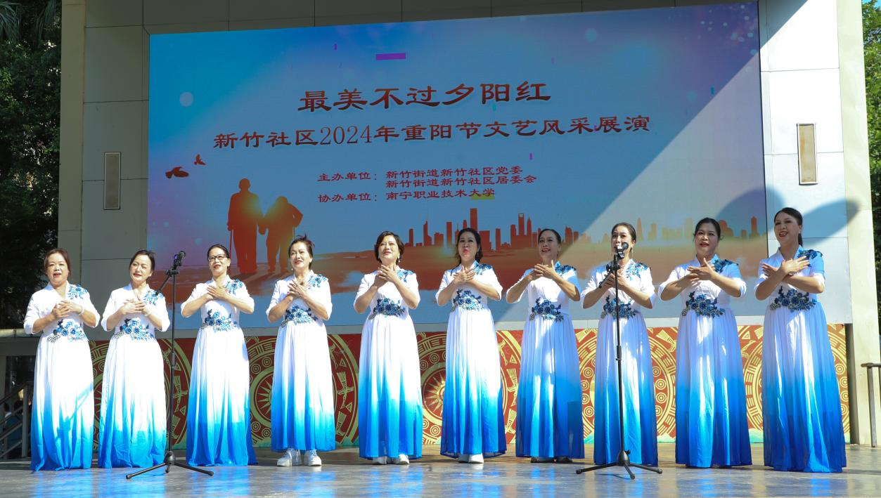 10月10日上午,我校退休职工组成的烛光艺术团参加了由南宁市新竹社区党委主办的“最美不过夕阳红”新竹社区2024年重阳节文艺风采展演。