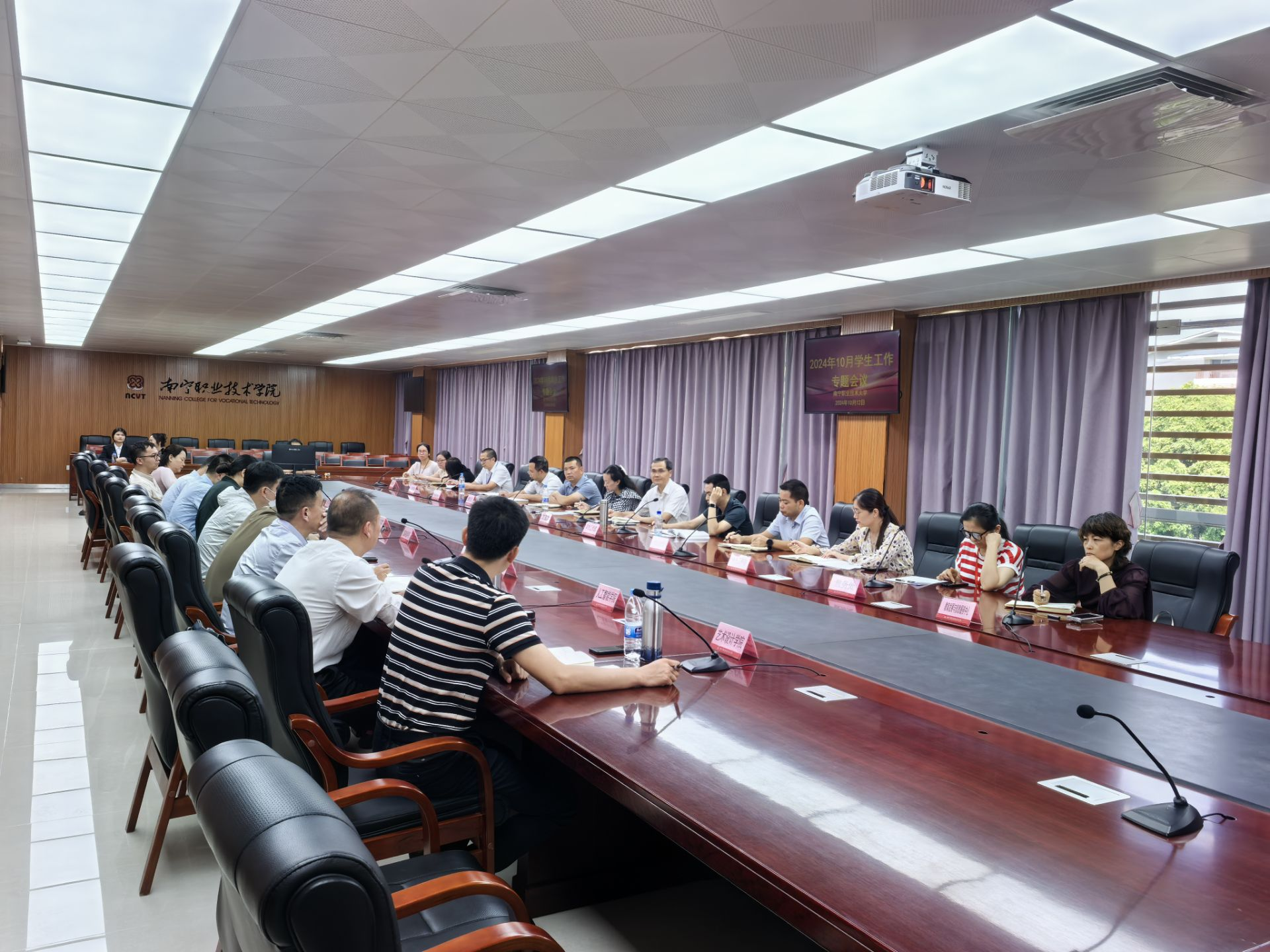 学生工作部(武装部、学生工作处)、教务处(招生就业处)、后勤管理处(保卫处)、教育发展与信息服务中心(图书馆)、团委和各学院学生工作负责人以及物业公司代表、学生代表参加会议。