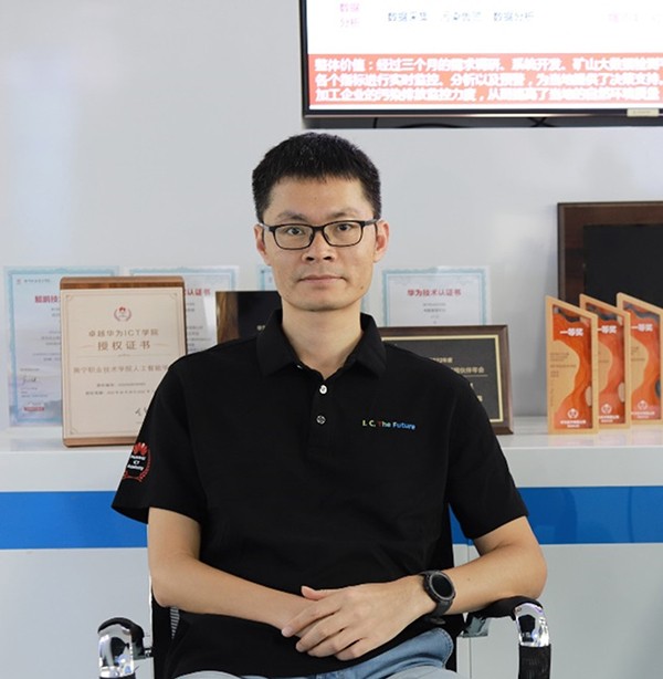在第八届华为ICT大赛中,邓启润担任南宁职业技术大学计算代表队的指导老师