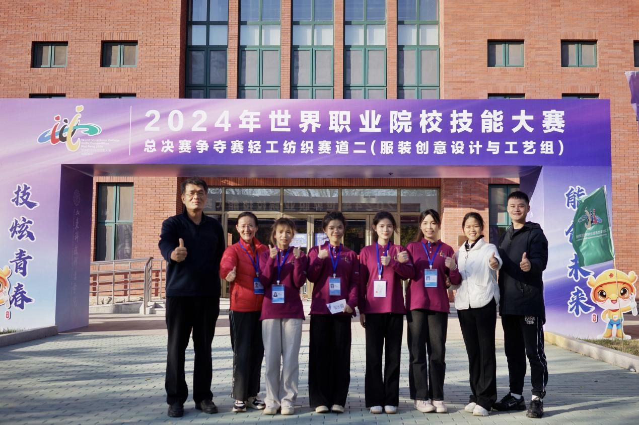 近日,2024年世界职业院校技能大赛《服装创意设计与工艺组》赛项在山东潍坊落下帷幕,由我校艺术设计学院服装与服饰设计专业教师黄世明、于漫云指导,学生黄敏、蒋礼婷、麦诗琴、白金艳组成的参赛队伍,凭借独特的创意理念、精湛的工艺技术和默契的团队配合,在总决赛争夺赛中以小组第四名的成绩斩获铜奖。