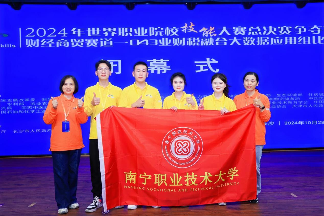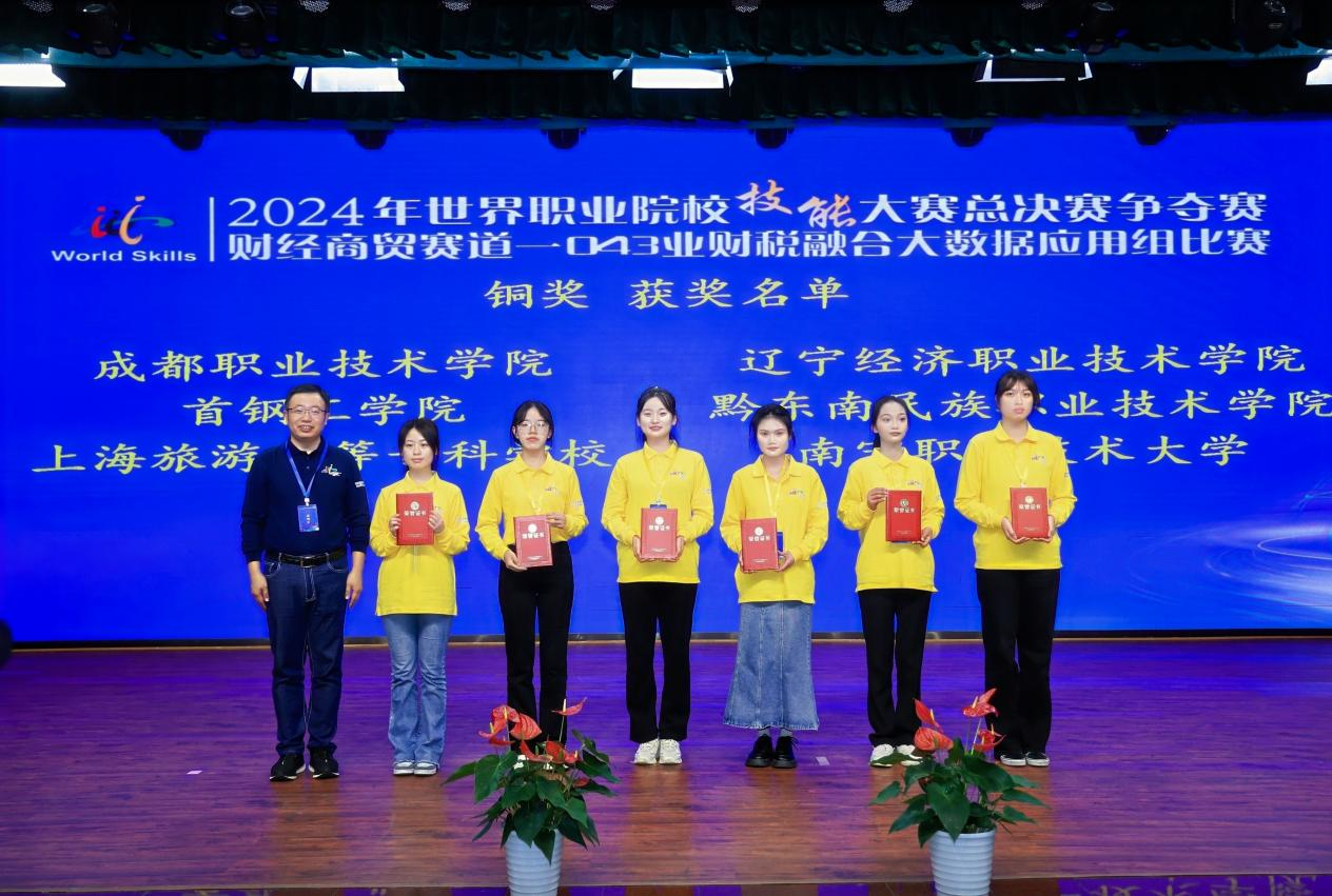 10月28日至30日,2024年世界职业院校技能大赛财经商贸赛道业财税融合大数据应用赛项争夺赛在长沙举行,共有来自全国61支队伍244名选手参加。经过激烈角逐,我校财经学院会计专业群邝雨、莫艳珍、黄婷婷、雷敬斌老师指导,吴涵洇、王鹏飞、刘婷、黄俊伟4名学生组成的参赛队,凭借扎实的专业技能、出色的专业素养和团队协作能力,斩获全国铜奖。