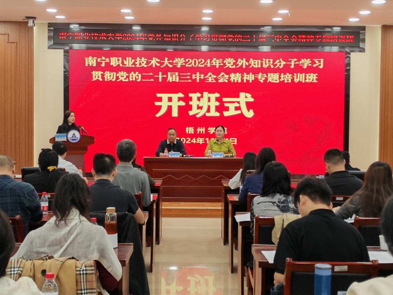 11月4日,我校2024年党外知识分子学习贯彻党的二十届三中全会精神专题培训班在梧州学院正式开班。学校统战干部、民主党派人士代表、党外知识分子代表等40余人参加培训。学校党委组织部(统战部、人事处)部长(处长)邓斌出席开班式并讲话。