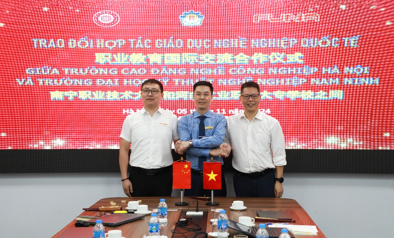 近日,我校智能制造学院吴泊良博士带领胡宁峪、方澄杲等骨干教师赴设立在越南河内工业职业大专学校的中国—越南电子信息现代工匠学院开展教学交流活动,以扎实举措,有力推进工匠学院建设。河内工业职业大专学校和苏州富纳艾尔越南公司为到访博士教师团队举行了热烈的欢迎仪式,校长阮氏恒,副校长阮文辉、陈青平出席欢迎仪式并致辞。