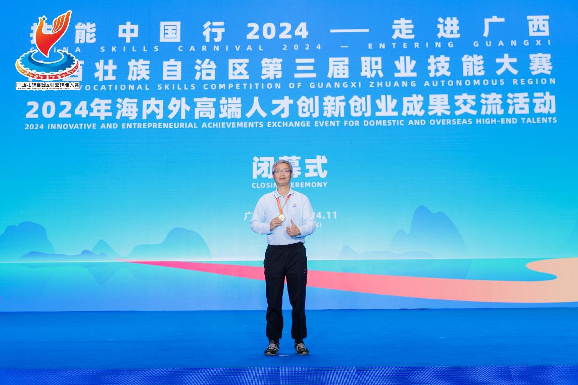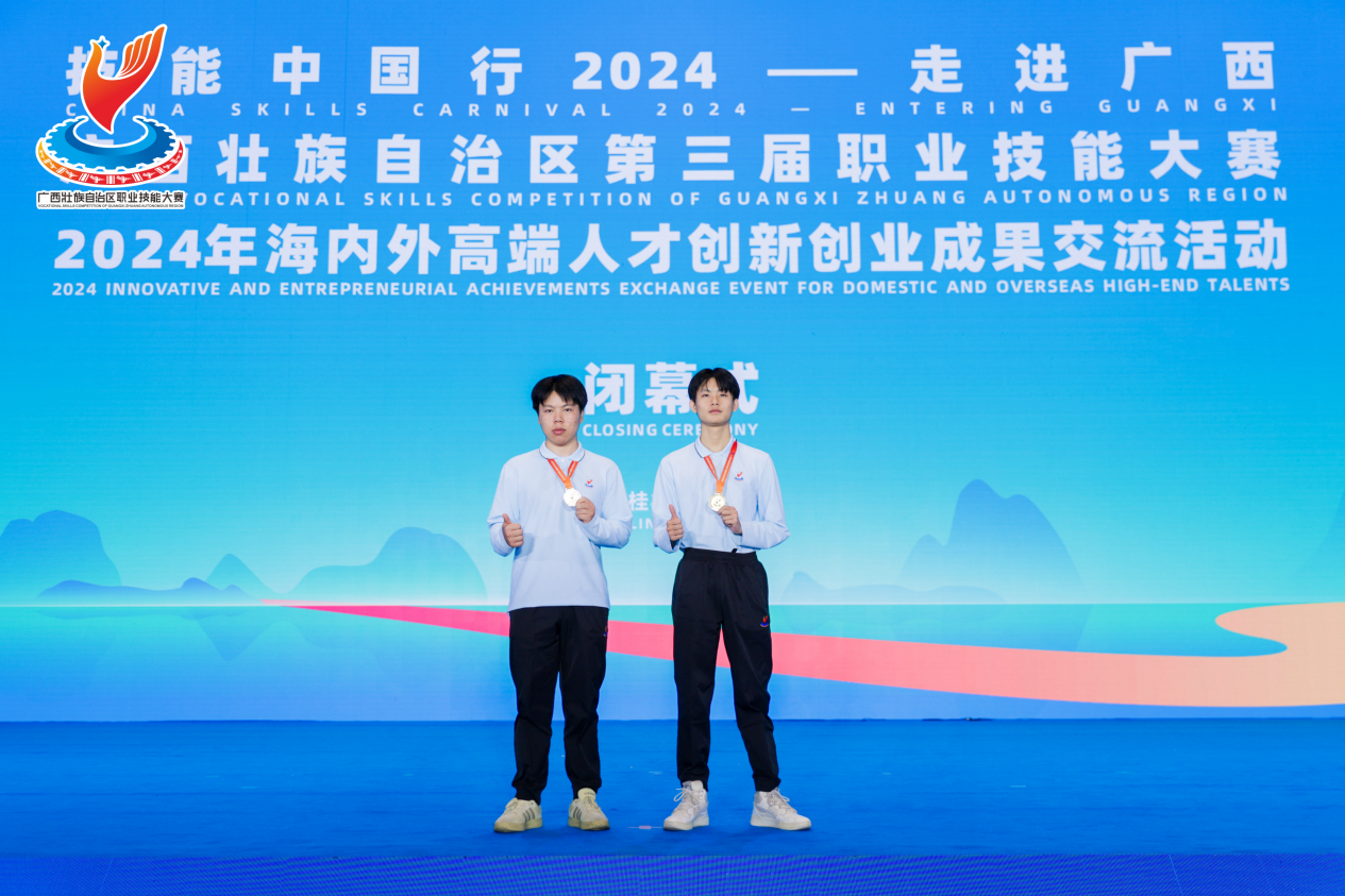 11月8日至11日,广西壮族自治区第三届职业技能大赛在桂林国际会展中心举办。我校人工智能专业带头人高伟锋参加人工智能训练(国赛精选)赛项,人工智能学院学生李涛、张杰强参加移动机器人(世赛)赛项。参赛师生凭借扎实的专业技能,沉着应对,经过数轮的激烈角逐,在两个参赛项目均夺得金牌。
