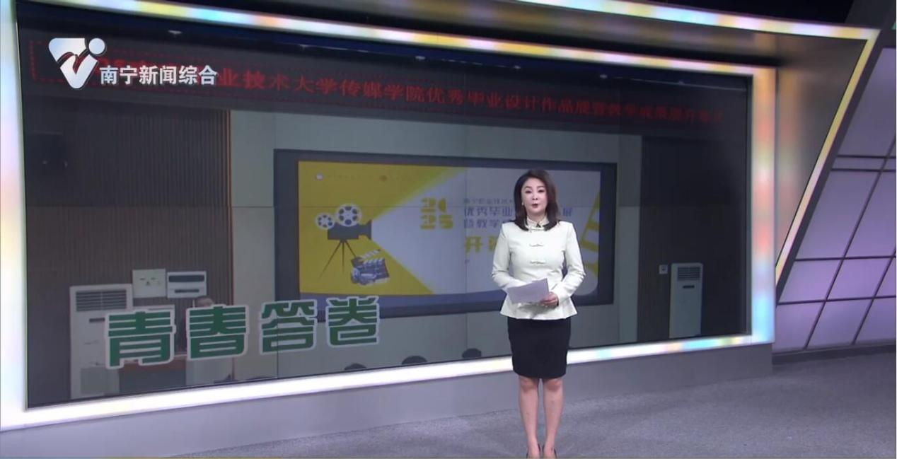 开幕式结束后,学校党委常委、纪委书记罗桂全,南宁市融媒体中心制片人刘捷,南宁市西乡塘区融媒体中心主任李敏生,广西卡斯特动漫有限公司副总经理何关等领导嘉宾莅临展区观展。大家对传媒学子丰富的想象力、过硬的专业技能和旺盛的艺术创造力表示高度认可。南宁广播电视台以本次毕业设计作品展暨教学成果展为切入点,对传媒学院一直以来坚持产教融合、校企合作过程中践行“新锐、融合、赋能”的办学新理念、新举措、新成果进行了深度报道。