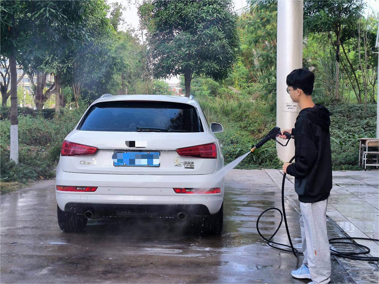活动当天,在指导老师的悉心指导下,志愿者们手持洗车工具,从冲洗、清洁到擦干,每一个步骤都一丝不苟。志愿者们凭借专业的技能、认真的态度和优质的服务,为50余名教师提供周到、细致的汽车养护服务,赢得了教师们的赞誉。