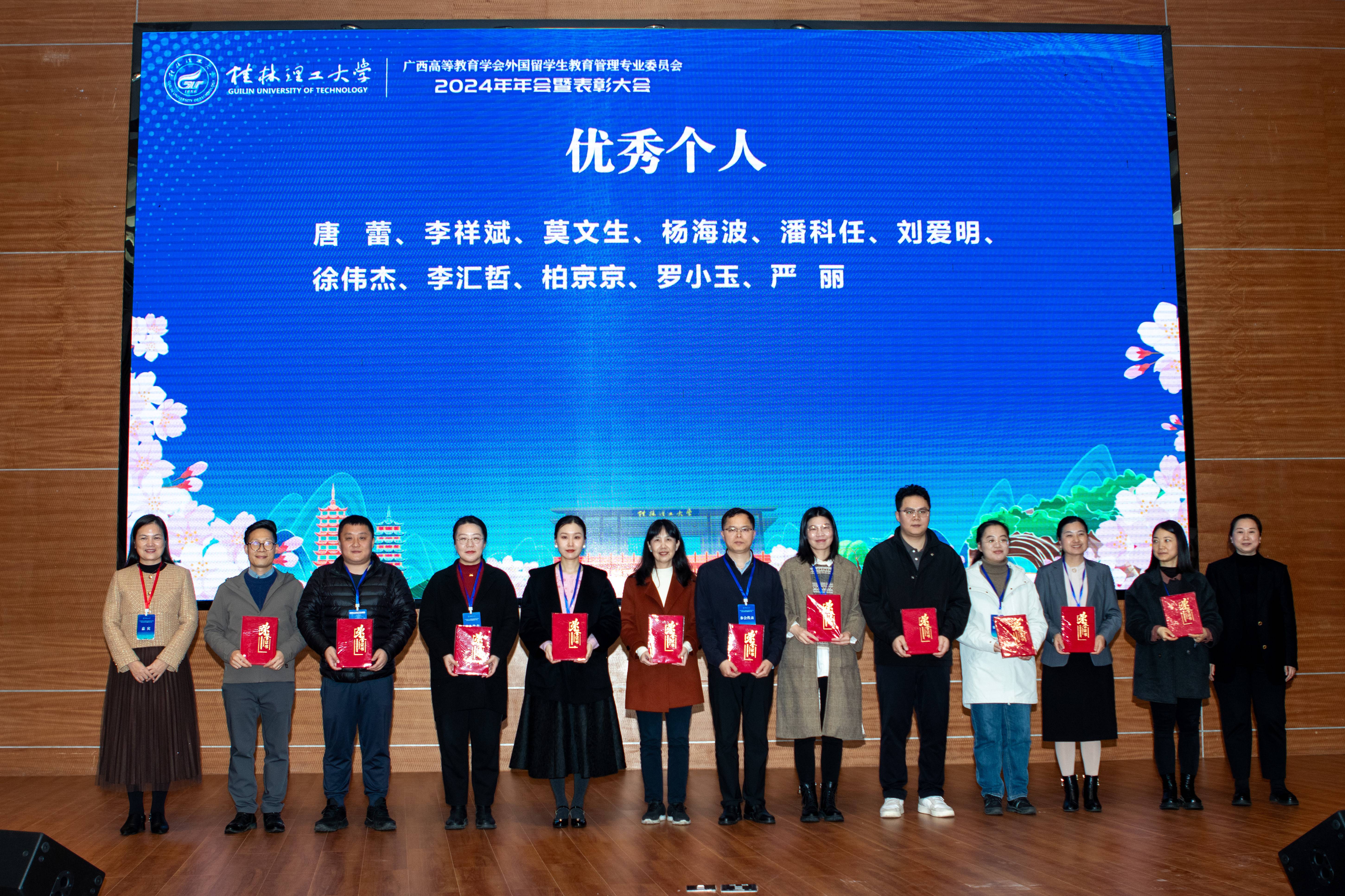 3月14日,广西高等教育学会外国留学生教育管理专业委员会2024年年会暨表彰大会在桂林理工大学召开。我校荣获“2024年广西高校来华留学教育工作优秀单位”,五位教师荣获“2024年广西高校来华留学教育工作优秀个人”,两位教师荣获“2024年广西高校来华留学教育工作优秀辅导员”。