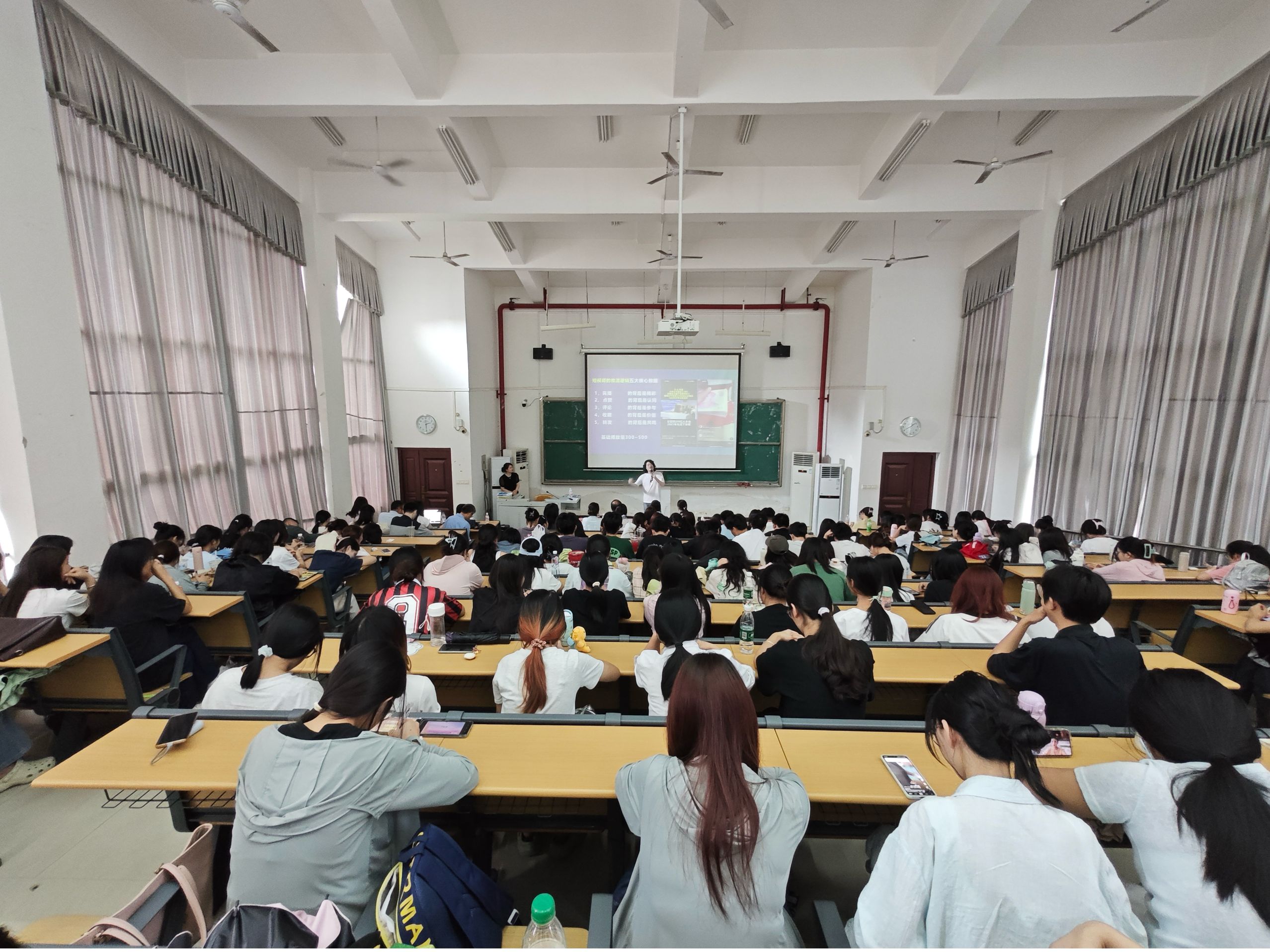 5月13日下午,由我校传媒学院主办的“超级电商直播(旅游方向+)”专题讲座在四号楼阶梯3教室成功举行。零距离文化旅游投资集团(以下简称“零距离集团”)总经理唐原、传媒部总经理李仕生、教培部总监曹鲁、电商部总监袁熙,以及我校传播与策划专业师生代表共170余人参与本次活动。