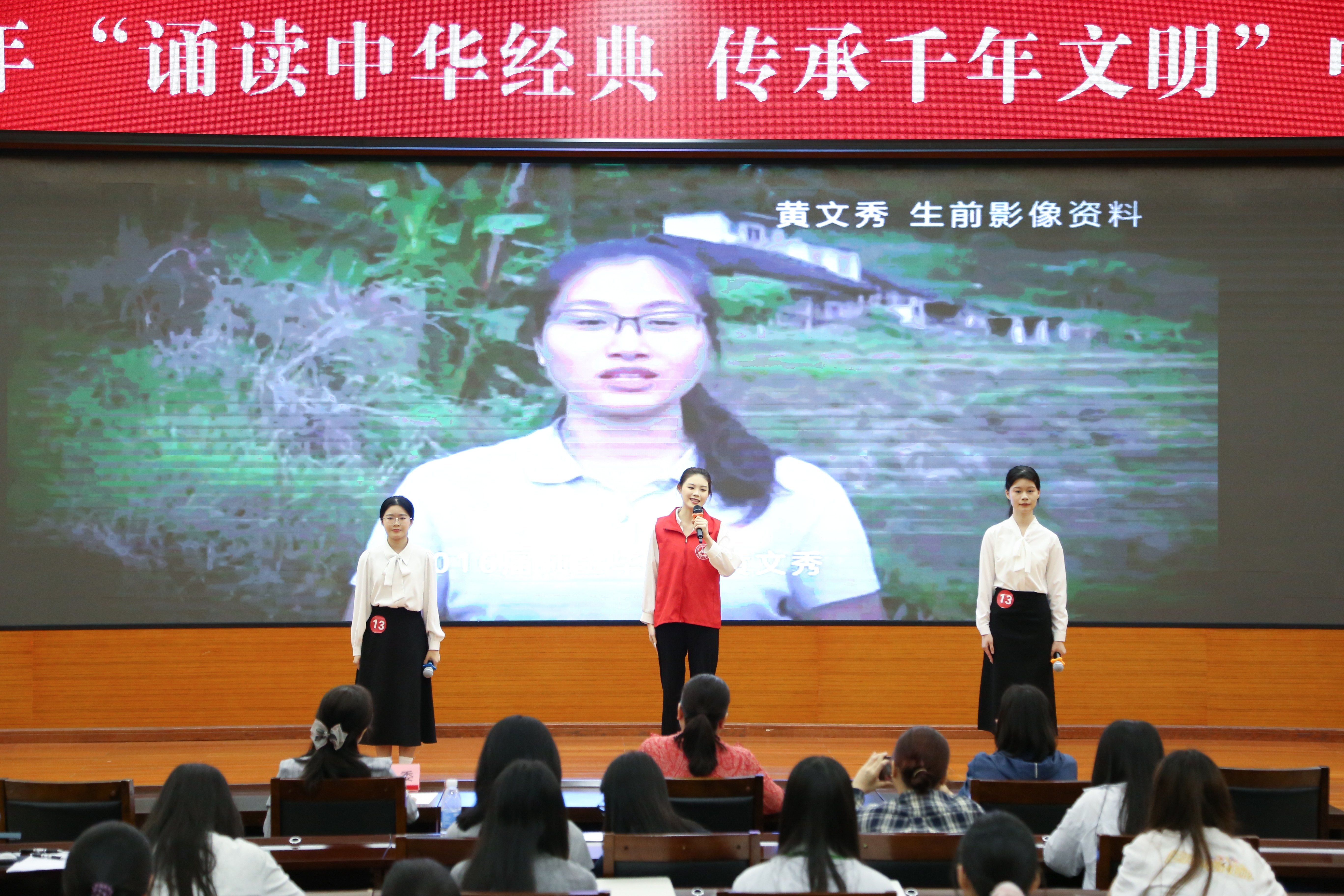 5月15日下午,南宁职业技术大学第七届科技文化艺术节系列活动之“诵读中华经典 传承千年文明”中华经典诵读大赛决赛在学校会议中心二号厅举行。