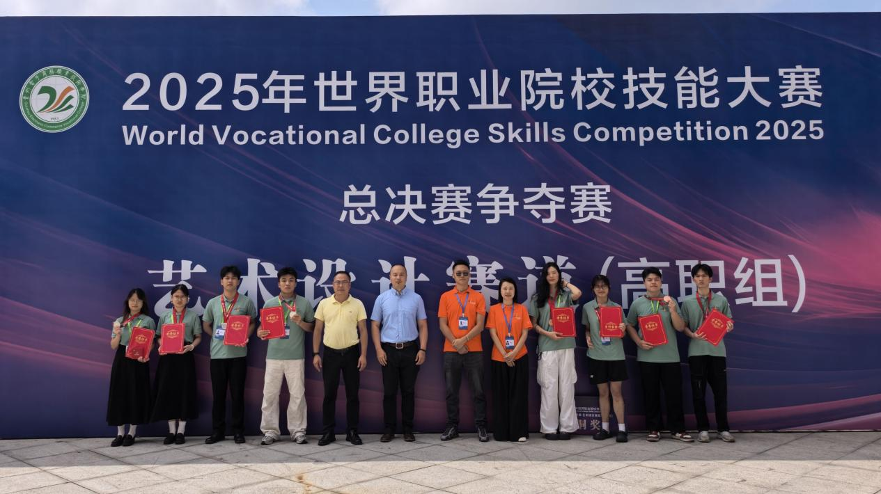 8月25日至31日,2025年世界职业院校技能大赛总决赛争夺赛艺术设计赛道(高职组)在贵州电子商务职业技术学院举办,来自全国职业院校的200支优秀队伍同台竞技。经过数日鏖战,我校智慧城市学院学子黄灵政、葛峥、韦榕义、计丹微,在何谊、黄晓明两位教师的悉心指导下,凭借出色的创意表现、扎实的专业功底与默契的团队协作,荣获大赛银奖。学子赵璇、李万里、申雯靖、黄祥,在张龙、朱小燕两位老师的指导下,以优秀的表现力、扎实的功底及出色的发挥,最终荣获大赛铜奖。