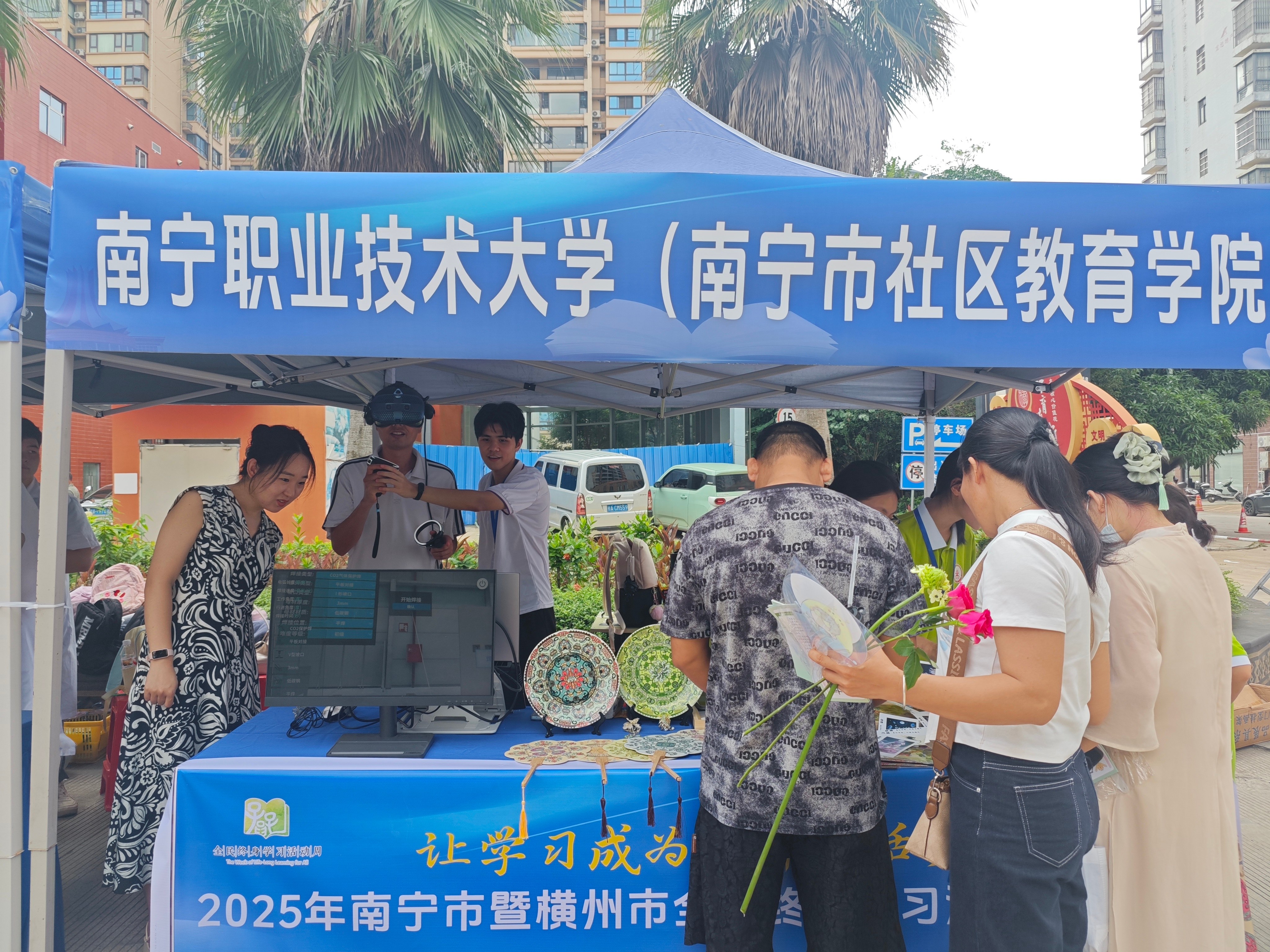 10月17日,2025年南宁市全民终身学习活动周在横州市融媒体中心开幕?;疃苡赡夏薪逃?、横州市人民政府主办,横州市教育局、南宁市职业教育中心、南宁职业技术大学(南宁市社区教育学院)共同承办。