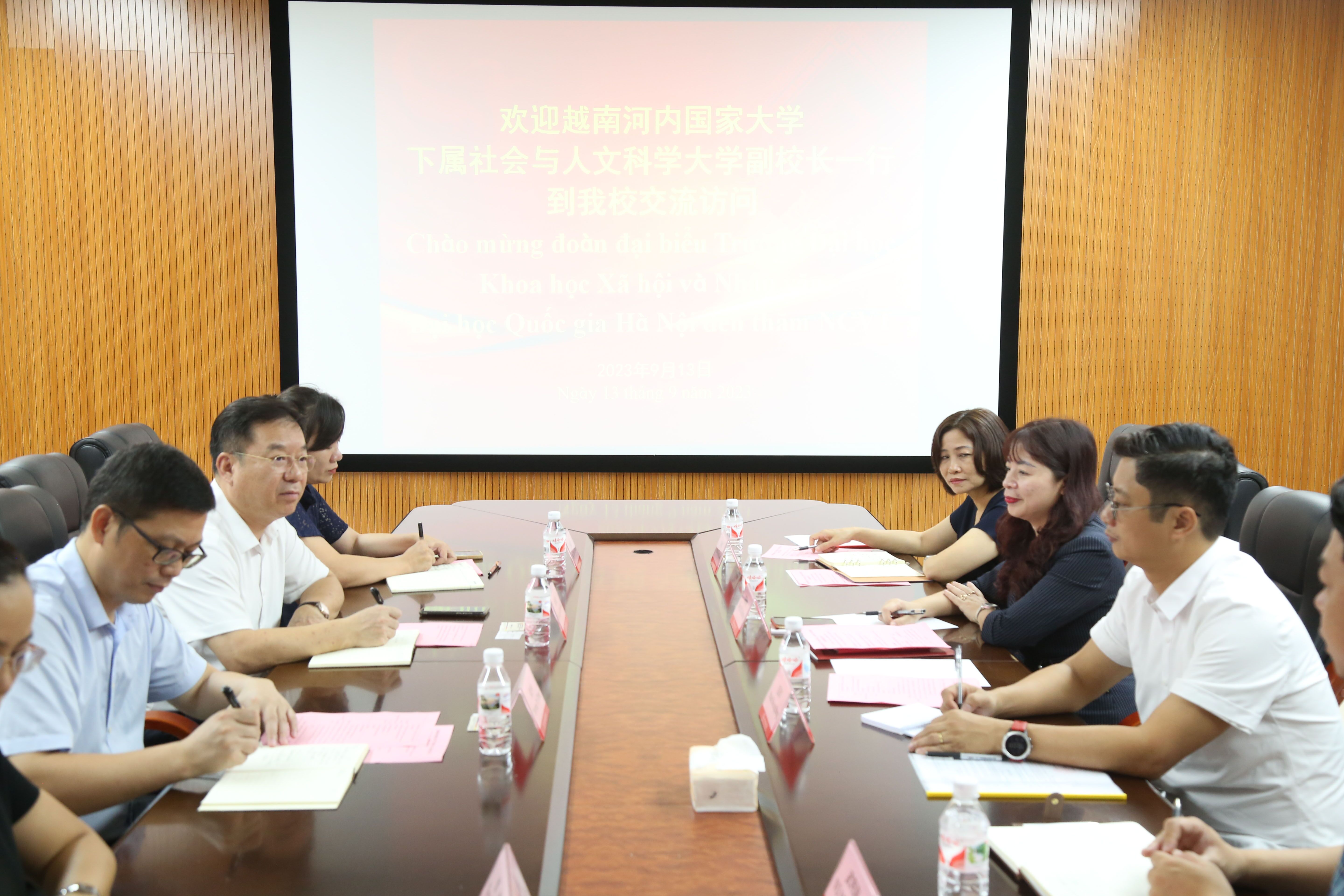9月13日,越南河内国家大学下属社会与人文科学大学副校长邓氏秋香一行来访我校,与我校签订合作办学协议。学校副校长黄春波,国际学院主要负责人及相关专业教师参加会议。
