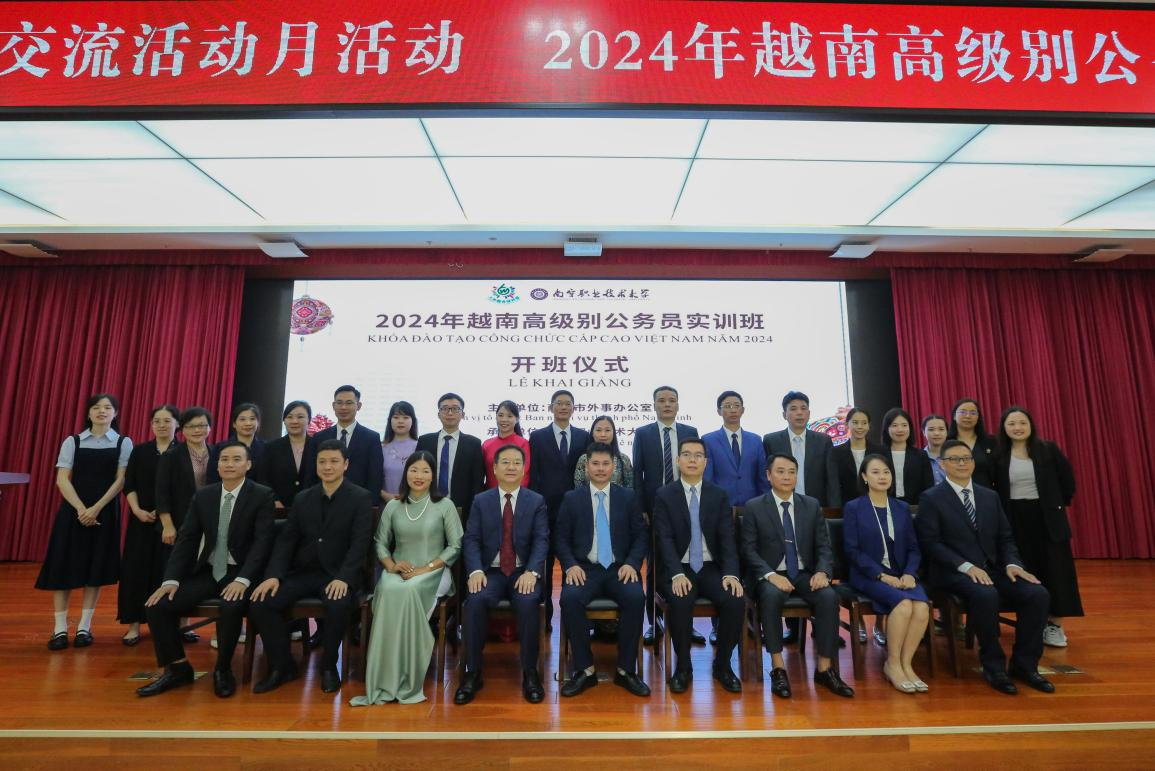 8月27日,2024年越南高级别公务员实训班在学校会议中心二号厅举行开班仪式。越南海防市外事厅办公室主任杜光明,学校副校长黄春波,南宁市外事办公室副主任梁健,南宁市数据局副局长颜以锋、唐国玉等领导出席开班式。来自越南的12位高级别公务员参加本次实训。开班式由学校国际学院院长张治中主持。