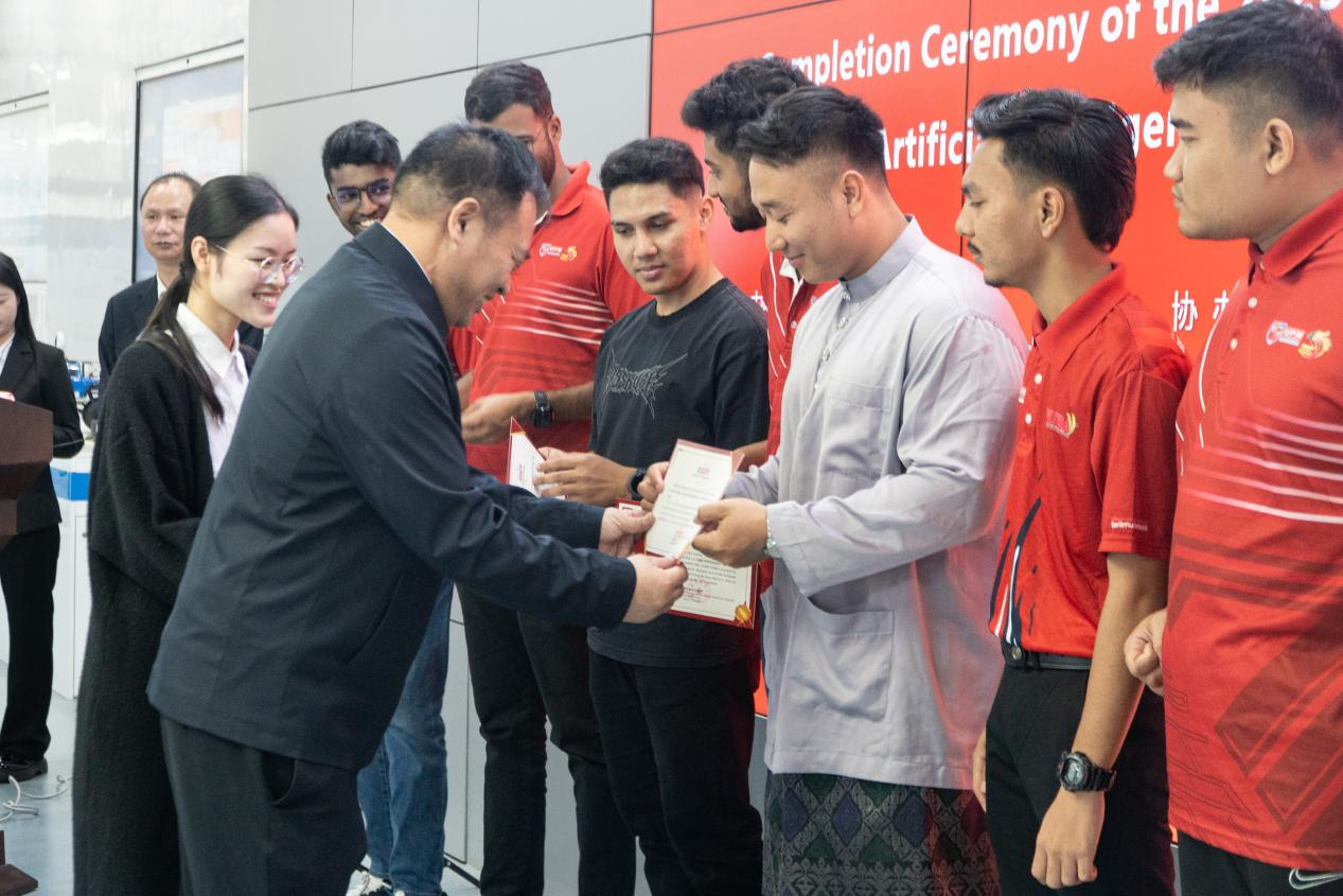 3月15日,由我校人工智能学院与马来西亚博特拉大学联合主办,唐风国际教育集团、华为技术有限公司、广西信息通信技术行业产教融合共同体和我校国际学院协办的“中文+人工智能”主题研学活动,在人工智能学院七训展厅举行结业典礼。人工智能学院党委书记、院长李光荣,唐风国际教育集团项目经理郭亚冉出席开班仪式并发言,马方学校学生卡利夫·阿纳克·康德尔代表学生发言。研学班学生、人工智能学院师生代表参加仪式。
