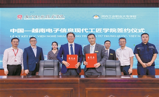 南宁职大以海外办学点为支点,联合越南河内工业职业大专学校、苏州富纳艾尔科技越南有限公司以及越南北部电子行业企业联盟,共建具有中国职教特色、符合东盟职教标准的中国—越南电子信息现代工匠学院。