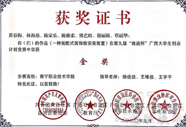 杨佳佳老师指导学生参加第九届“挑战杯”广西大学生创业计划竞赛获金奖