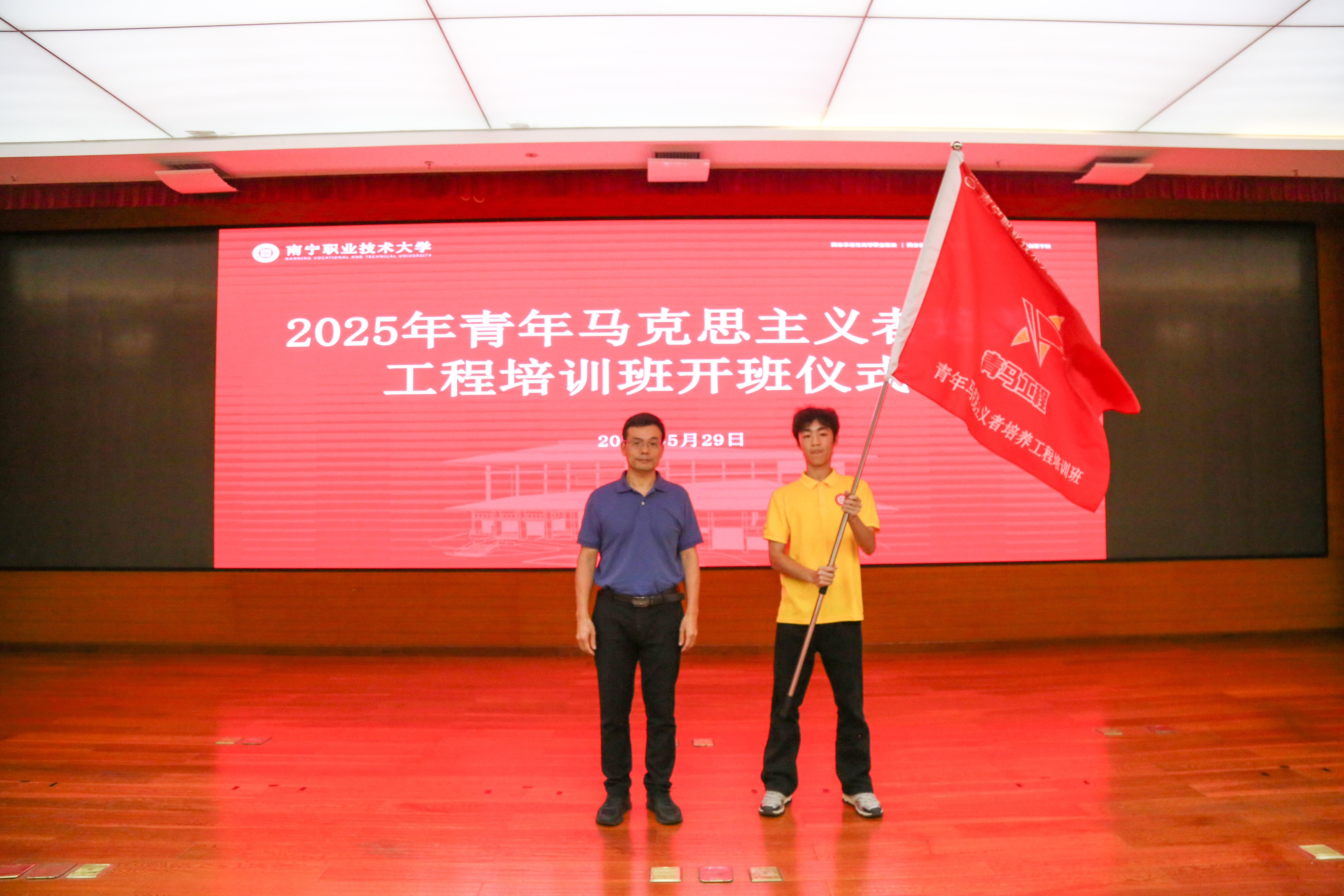 开班仪式上,李东升为2024级校“青马工程”学员代表授旗。2023级校“青马工程”学员代表贺甜甜分享了在培训班学习的所感所获,鼓励2024级学员珍惜学习机会,加强理论修养,提高综合素质。2024级校“青马工程”学员代表林小恋表示,将把理论学习成果转化为实干动能,做马克思主义的坚定拥护者、勇于实践者、积极传播者。
