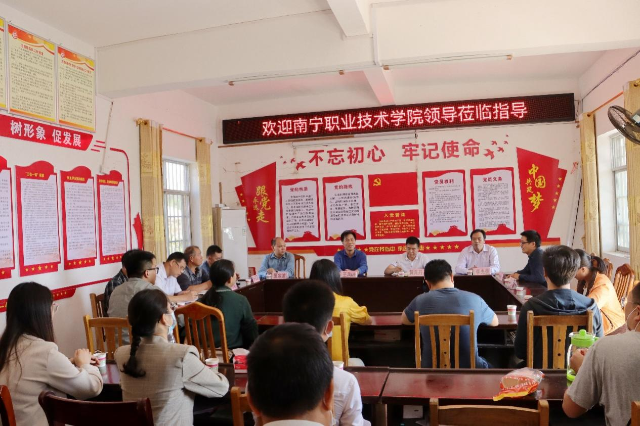 10月31日,学校副校长王凤岭带队前往乔贤镇上林县横岭村开展“一帮一联”活动。人工智能学院党委书记、院长李光荣,副院长许建豪,上林县乔贤镇党委书记黄兆丹,党委副书记匡宗波等参加座谈。