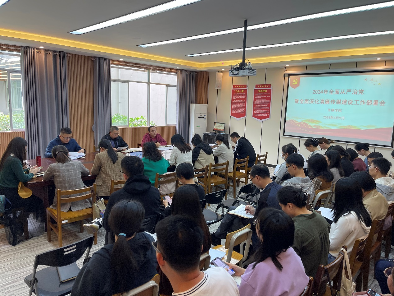 传媒学院召开2024年全面从严治党暨全面深化清廉传媒建设工作部署会(刘明君/摄)