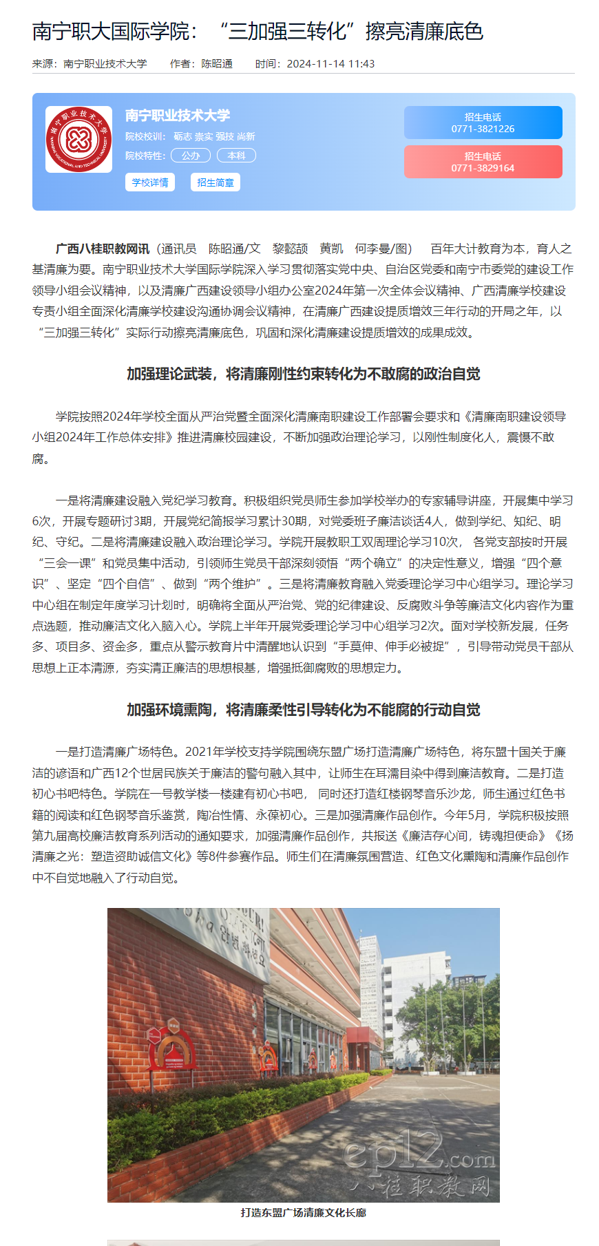 下一条:【广西八桂职教网】南宁职大智能制造学院:多措“廉”动,谱写清廉学院建设新篇章