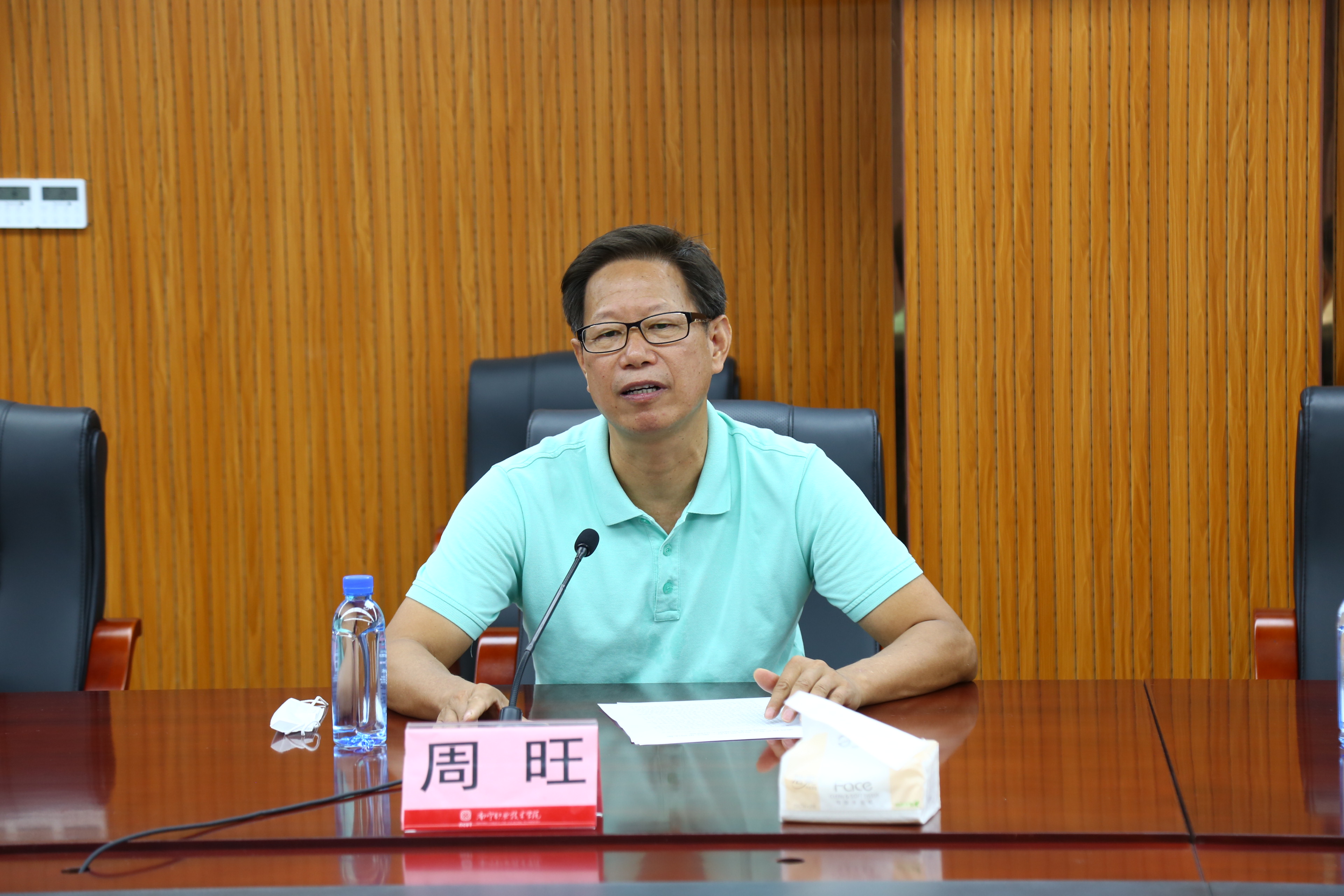 周旺为调研组一行介绍学校情况(陈诚/摄)