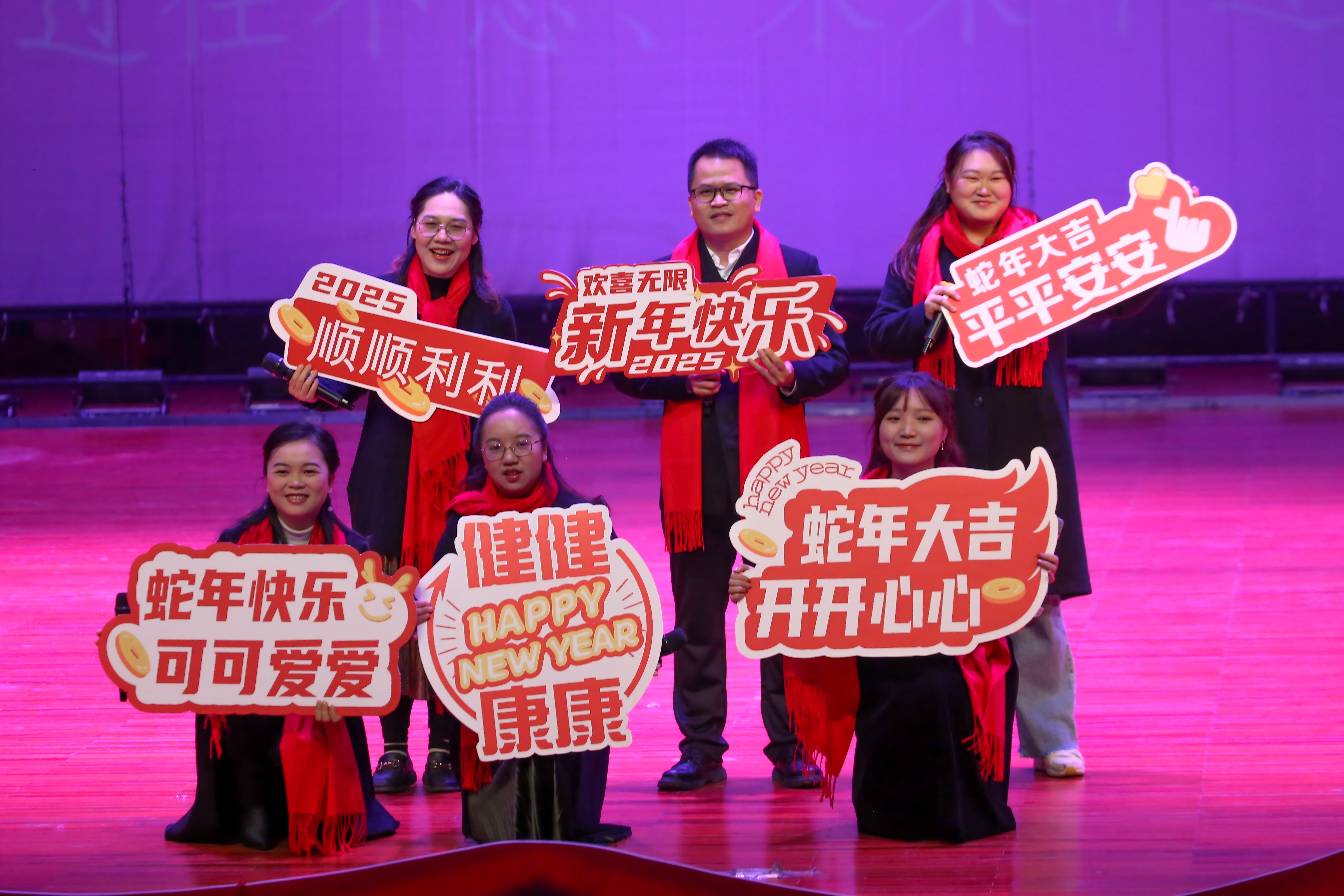 神龙顾盼别旧年,金蛇翩跹迎新春。1月3日下午,我校商学院2025年迎新年联欢会在学校会议中心大礼堂举行。学校党委书记蹇兴超,学校党委副书记杨清源,学校党委组织部(统战部、人事处)、党委宣传部、学生工作部(武装部、学生工作处)、团委、商学院相关负责人以及合作企业代表出席联欢会。